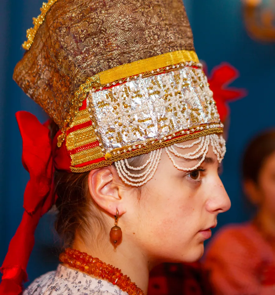 Народный коллектив студии традиционного костюма «Русские начала» готовятся к показу в галерее Глазунова.