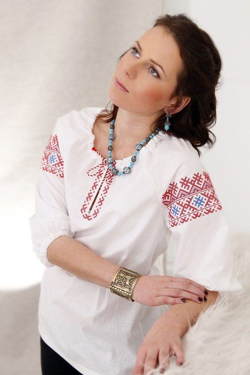 Цвет: белый, красно-синяя вышивка