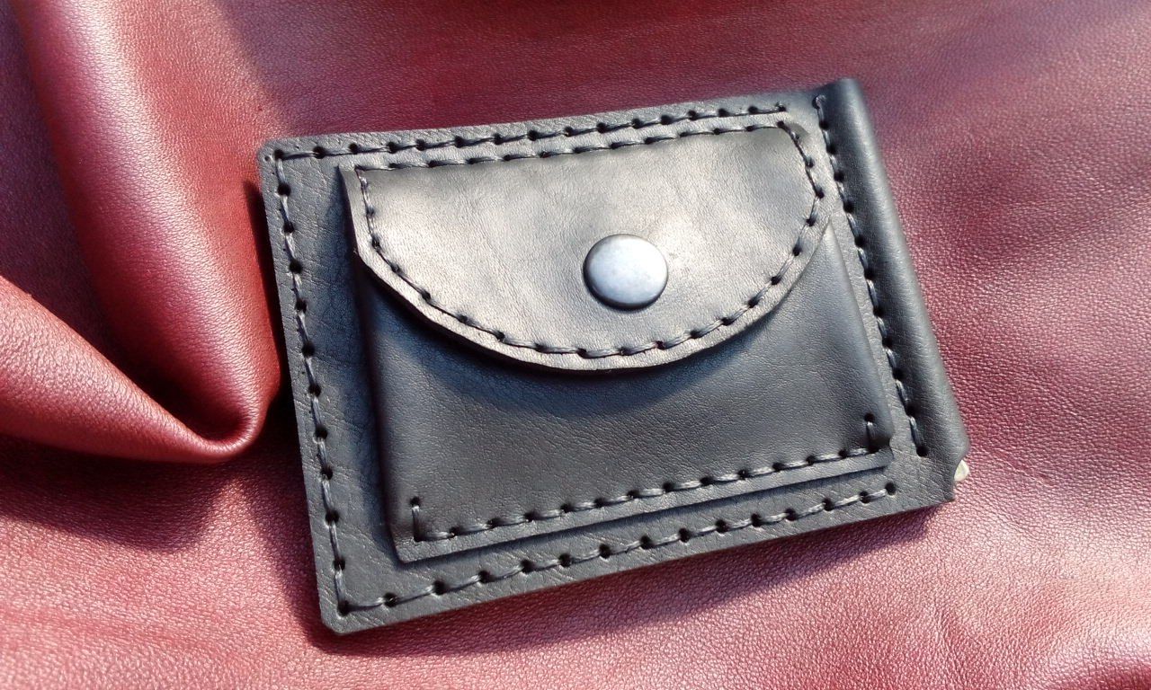 Зажим для денег ручной работы. Внутри 2 отделения для карточек.