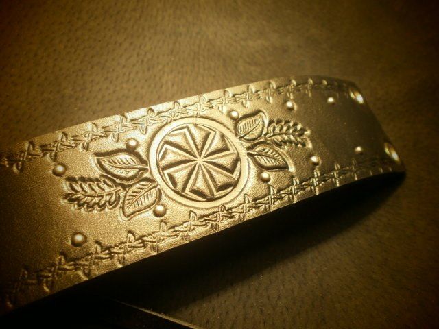 Браслет в оформлении которого мастер использовал листики, символ может быть любой по Вашему желанию.