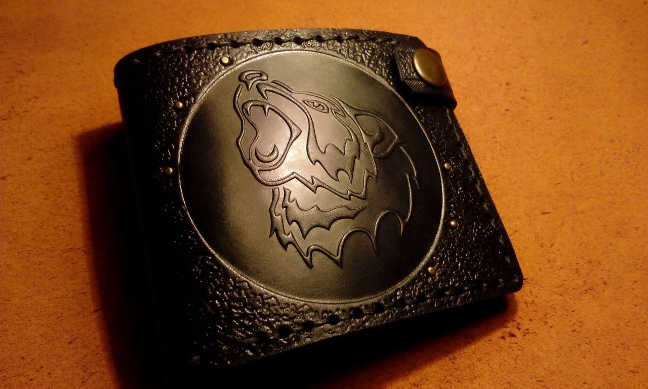 Кошелек ручной работы с тиснением "Медведь-новый вариант".