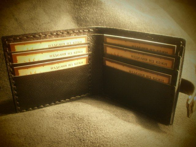 Кожанный кошелек ручной работы с тремя разными вариантами внутреннего оформления. При заказе выбирайте, какой больше по нраву.