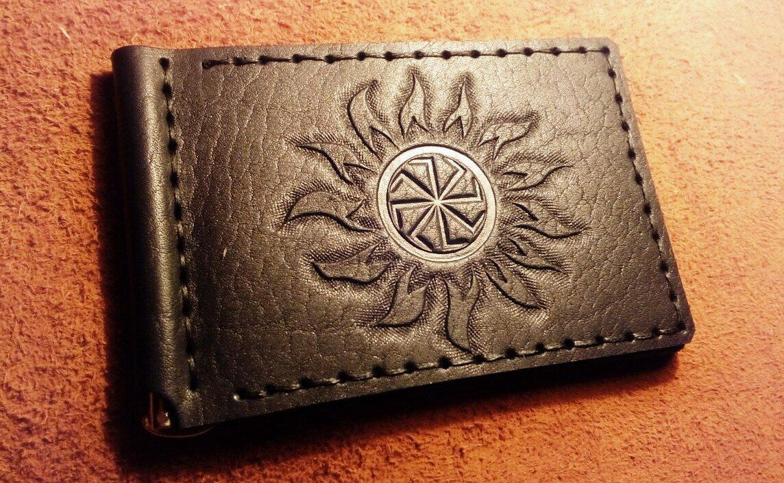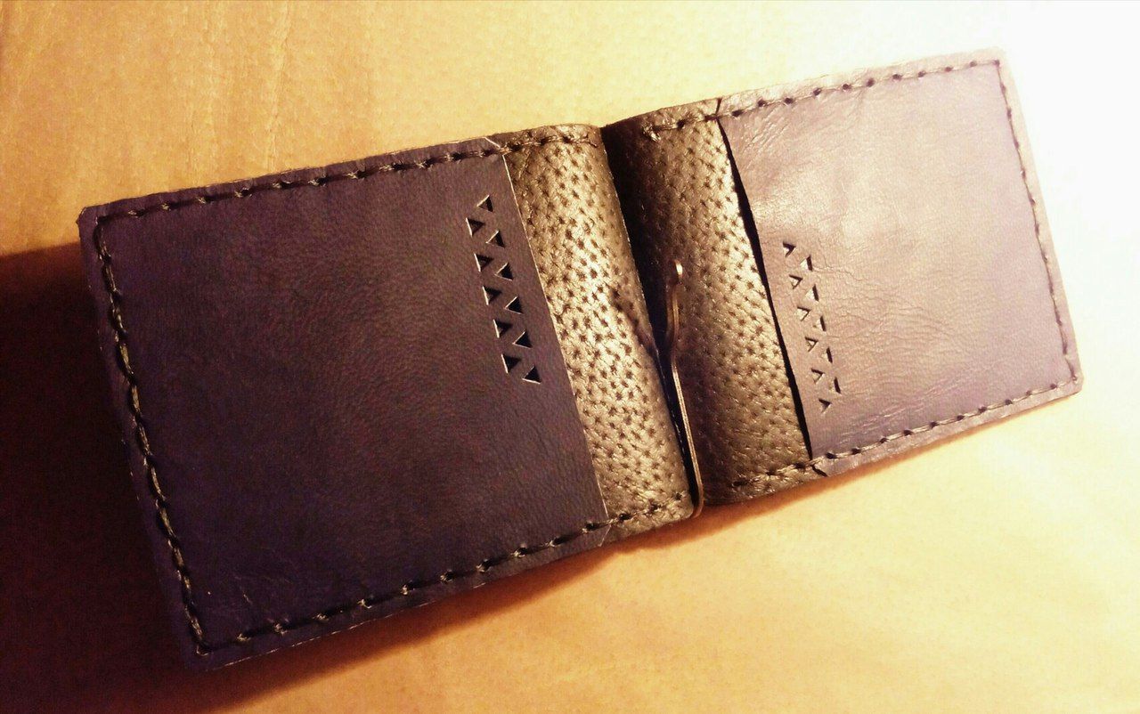 Зажим для денег ручной работы. Внутри 2 отделения для карточек.