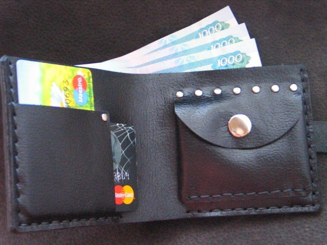 Кожанный кошелек ручной работы с тремя разными вариантами внутреннего оформления. При заказе выбирайте, какой больше по нраву.