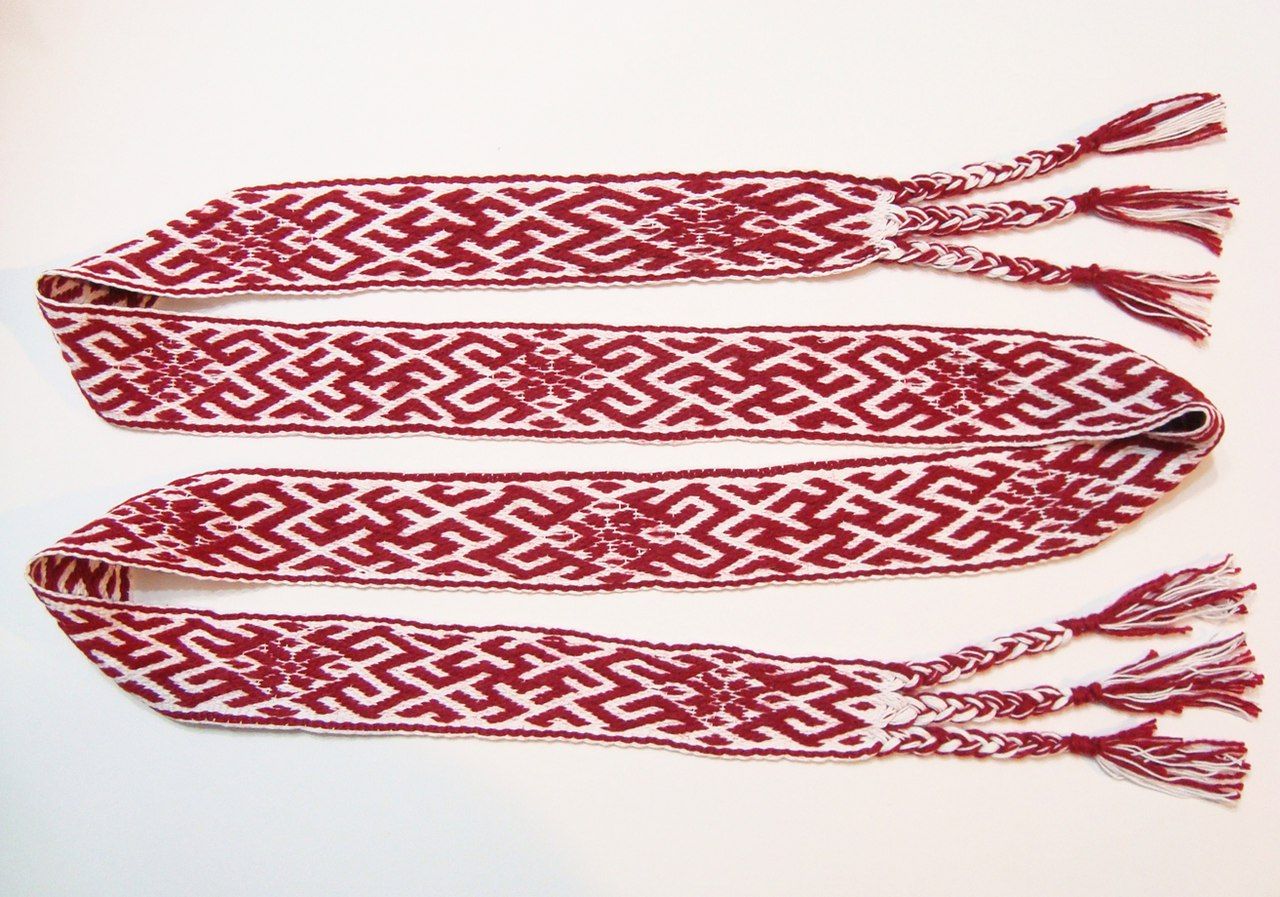 Пояс "Братислав" соткан вручную из шерстяных нитей на деревянном станке .