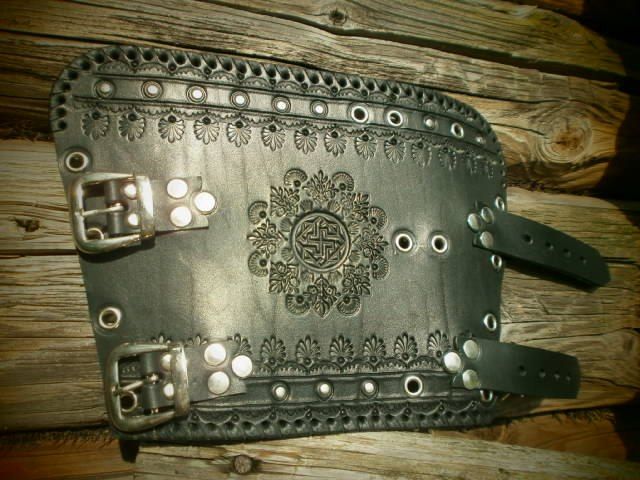 Наруч с отверстиями для самостоятельного закрепления ножа и дополнительными отверстиями для шнуровки.