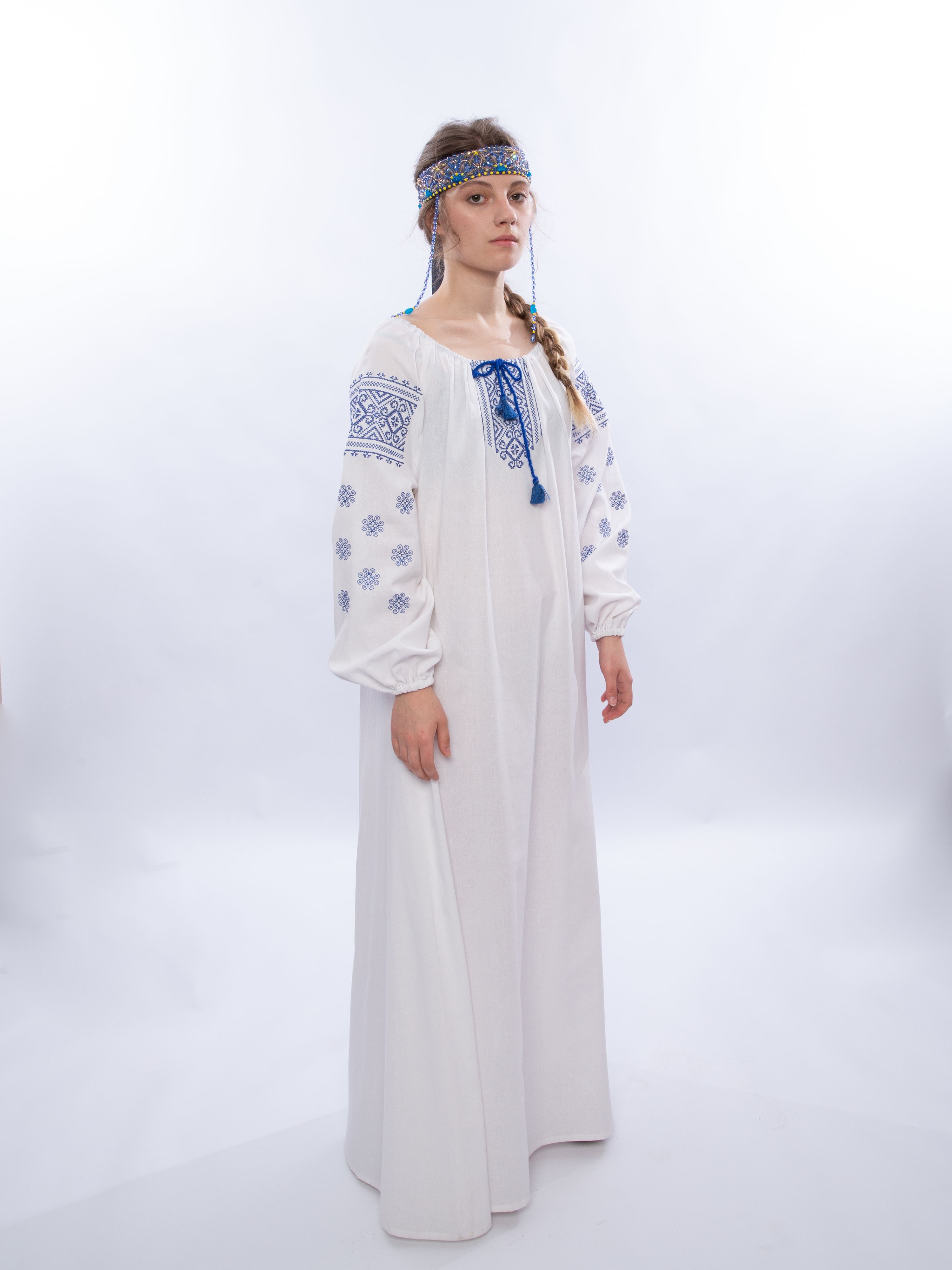 Льняное славянское народное платье-рубаха.