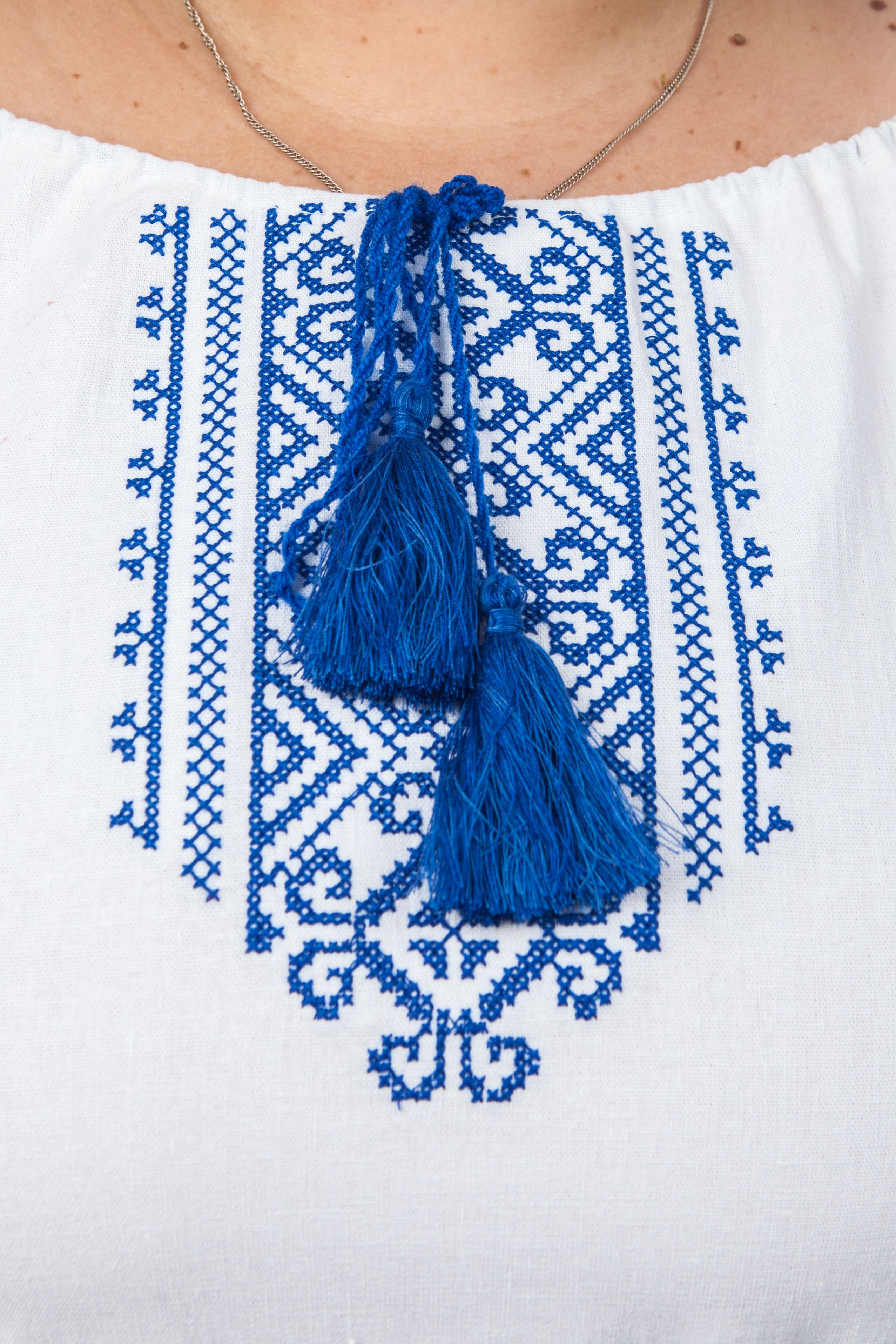 Цвет: белый с красной или синей вышивкой.
