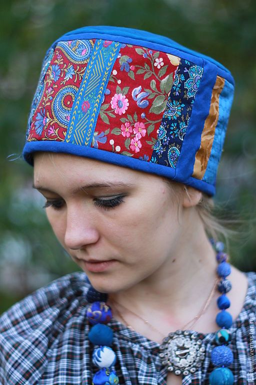 Русский традиционный женский головной убор "Повойник лоскутный".