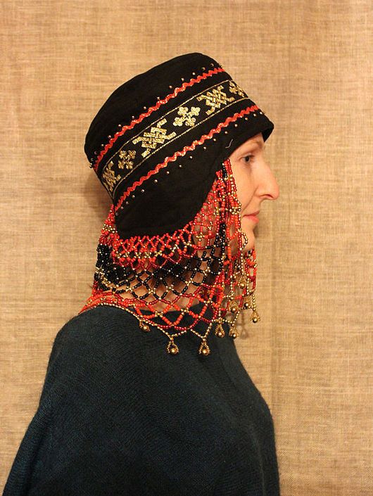 Нарядный повойник с мощным позатыльнем украшает современную одежду молодых женщин. Выполнен по образцам повойников центральной России в методике многослойного шитья. Не мнется, сворачивается в небольшой объем.