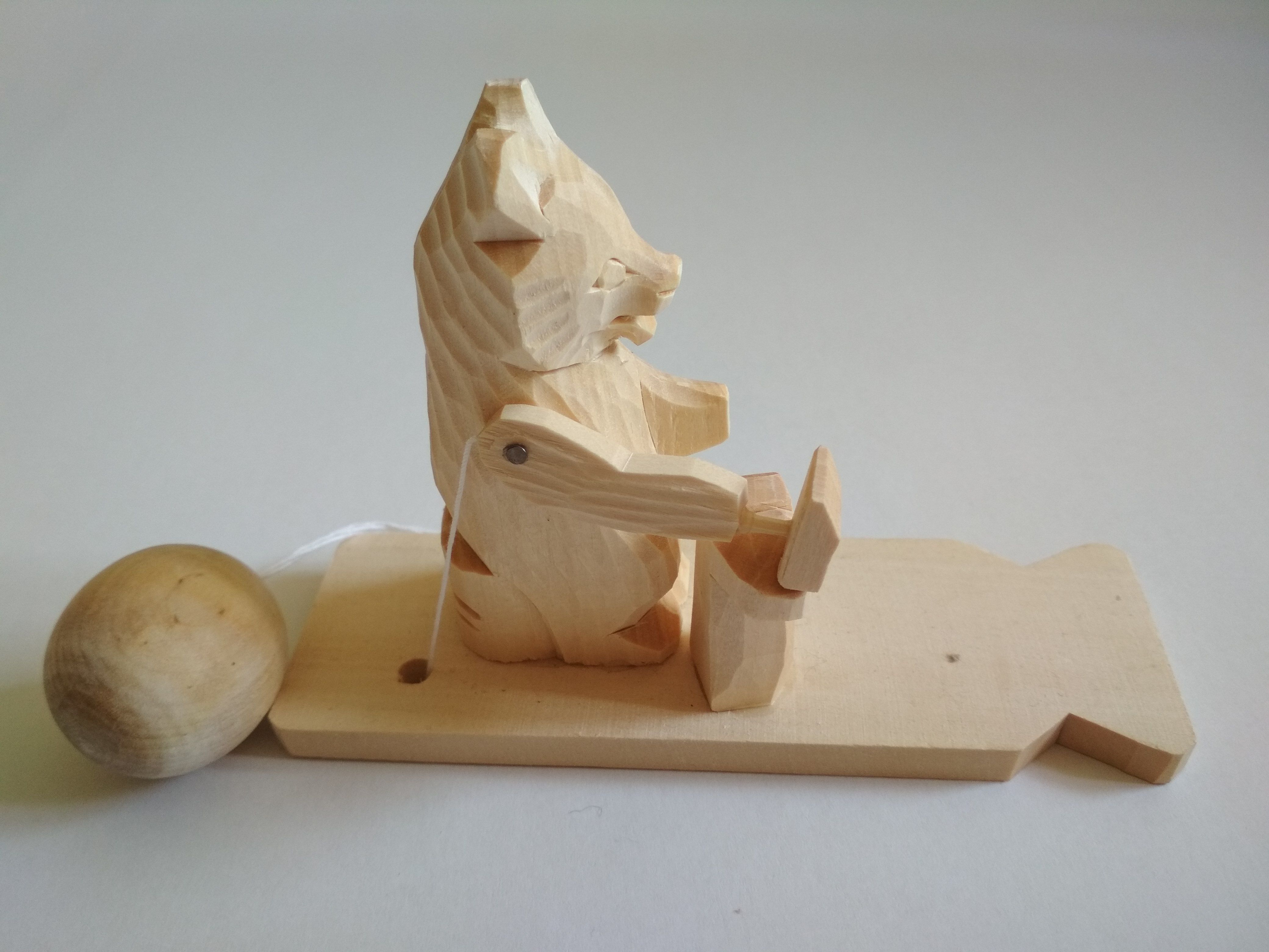 Еще одной известной поделкой считаются «Курочки». Ее отличительной особенностью является планка и баланс, который приводит конструкцию в движение. В результате выполненных движений птицы по очереди начинают клевать зерно. Сюжеты таких игрушек неслучайны, ведь большинство из них крестьяне черпали из собственной жизни, а также народных сказок. Именно в них в качестве героев выступали: медведь, простой деревенский мужик, птицы