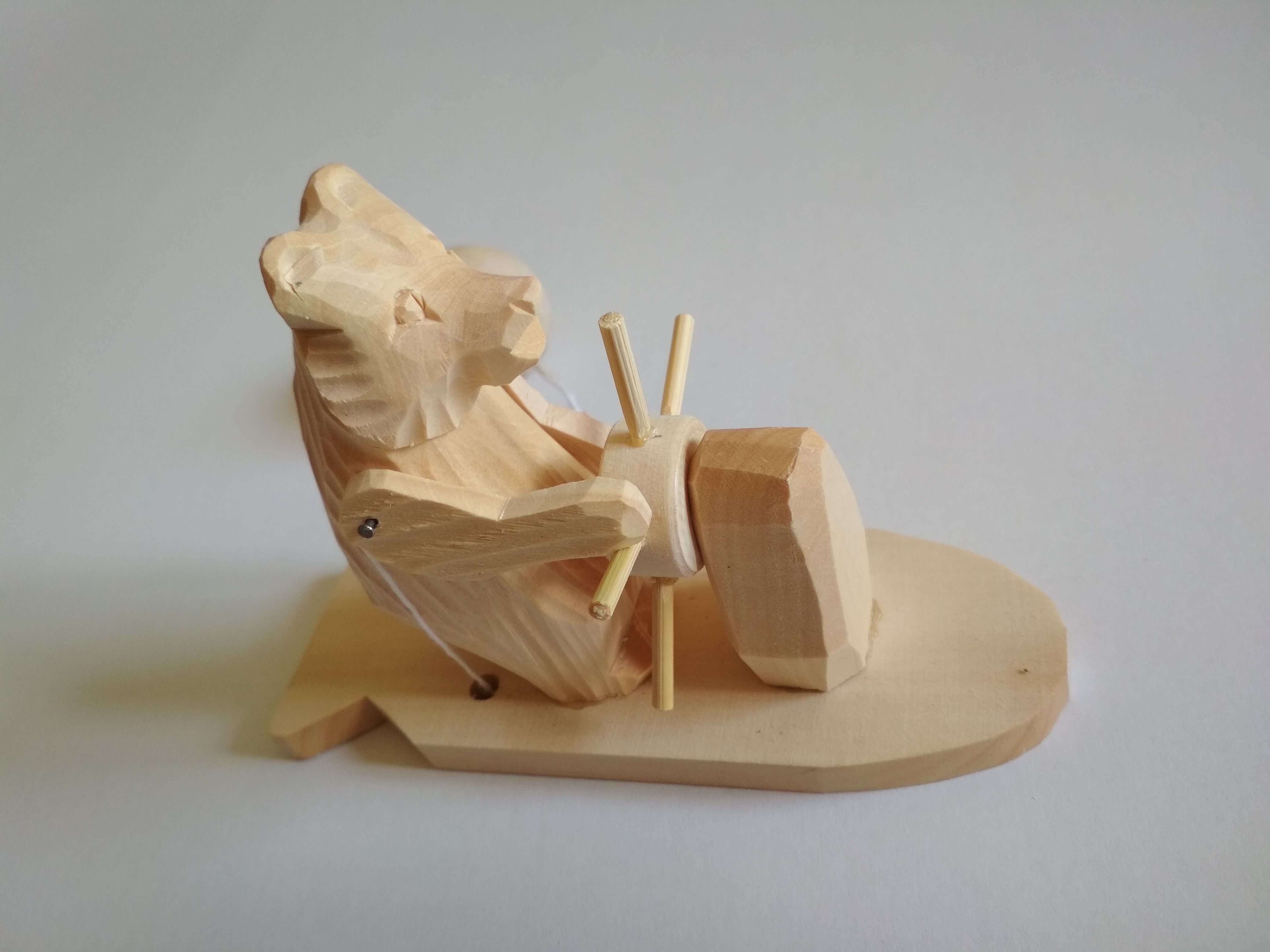 Еще одной известной поделкой считаются «Курочки». Ее отличительной особенностью является планка и баланс, который приводит конструкцию в движение. В результате выполненных движений птицы по очереди начинают клевать зерно. Сюжеты таких игрушек неслучайны, ведь большинство из них крестьяне черпали из собственной жизни, а также народных сказок. Именно в них в качестве героев выступали: медведь, простой деревенский мужик, птицы.