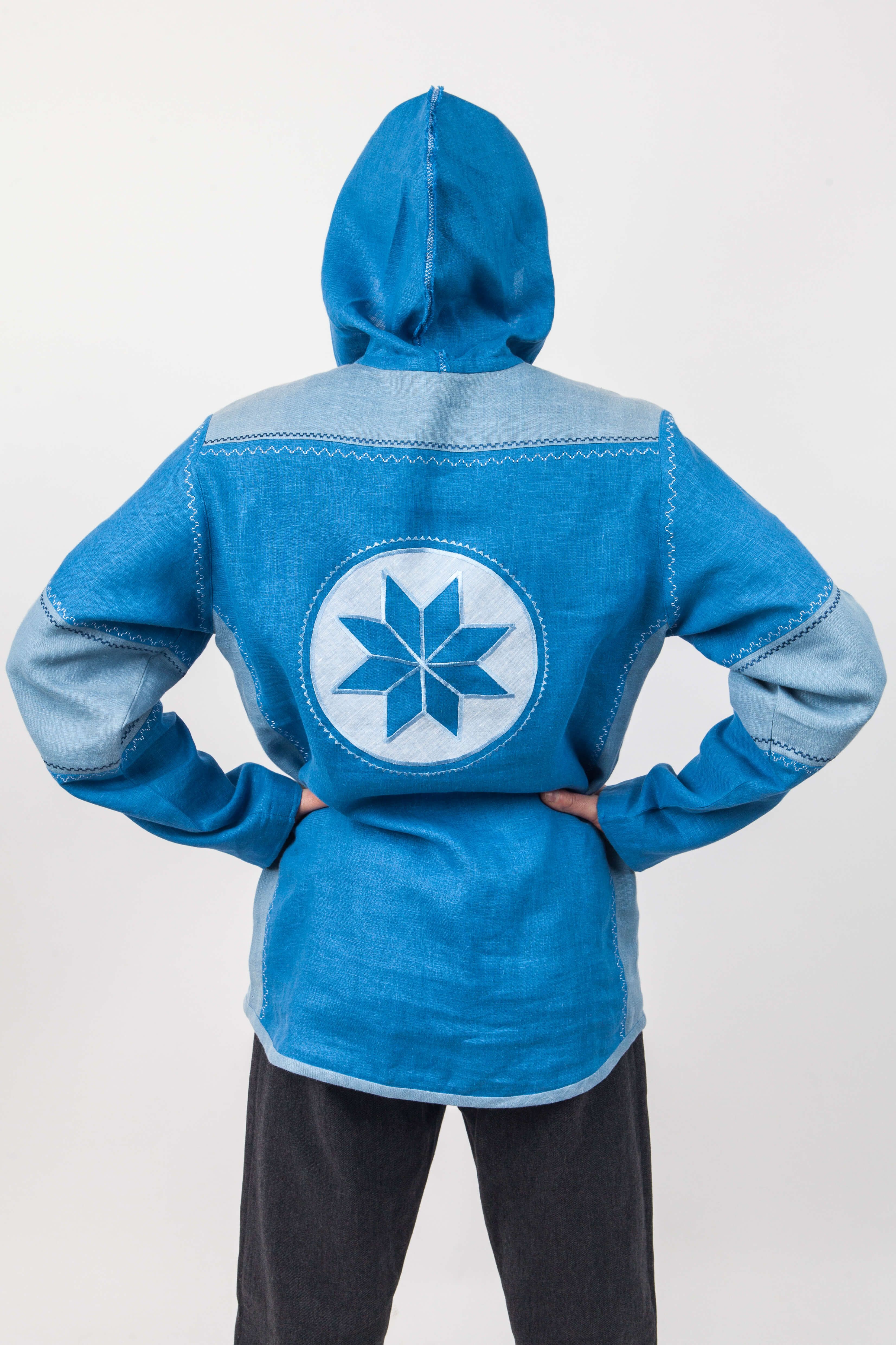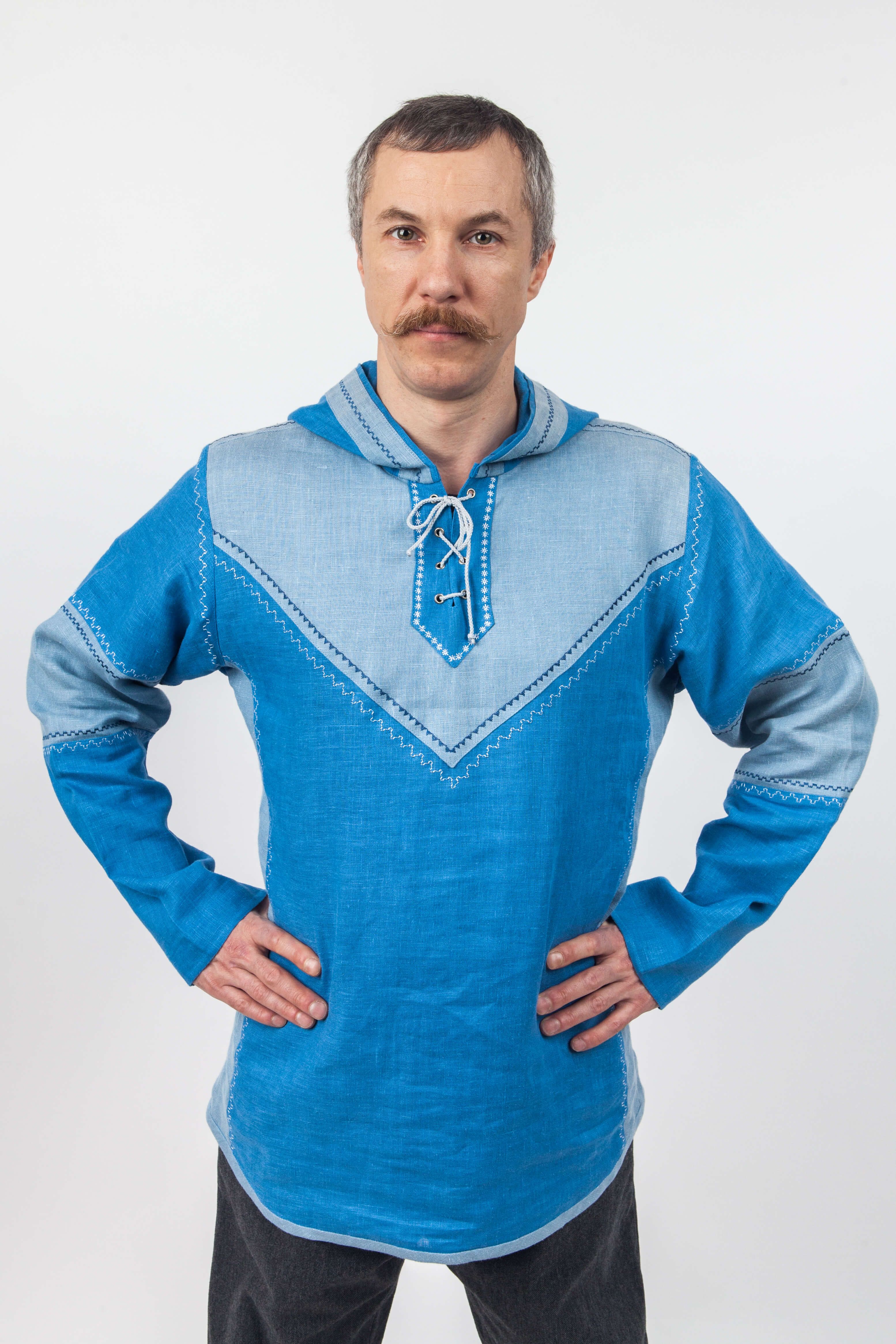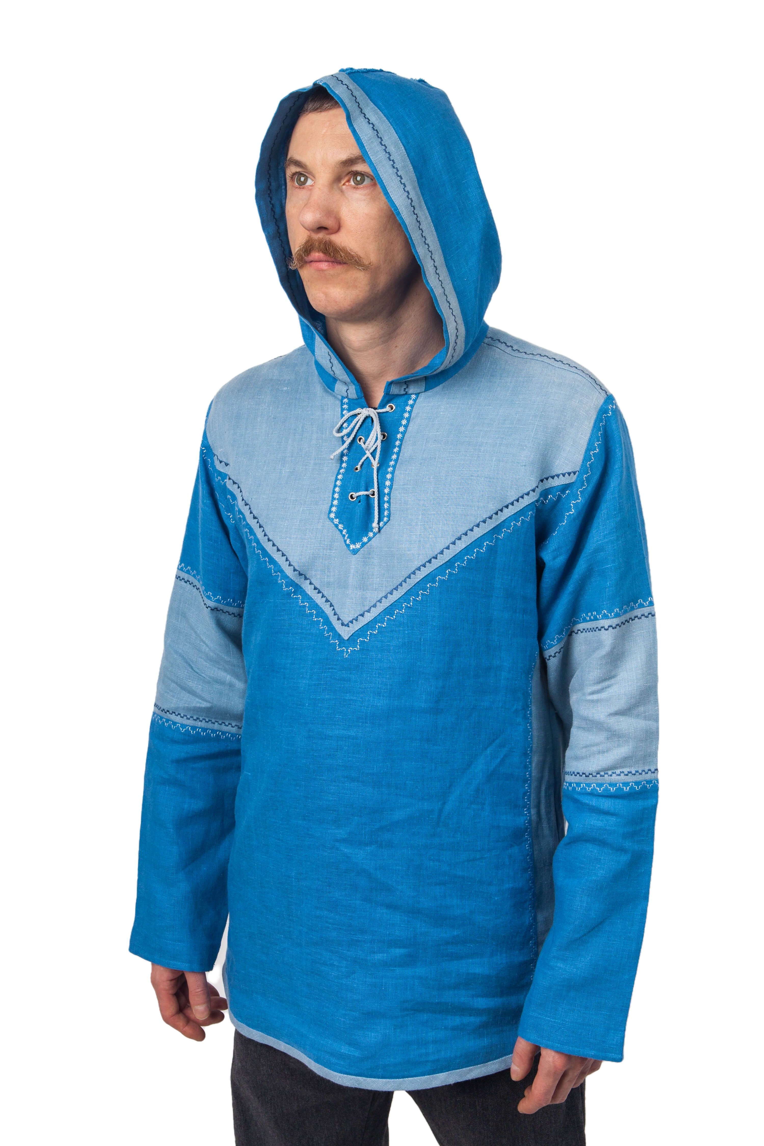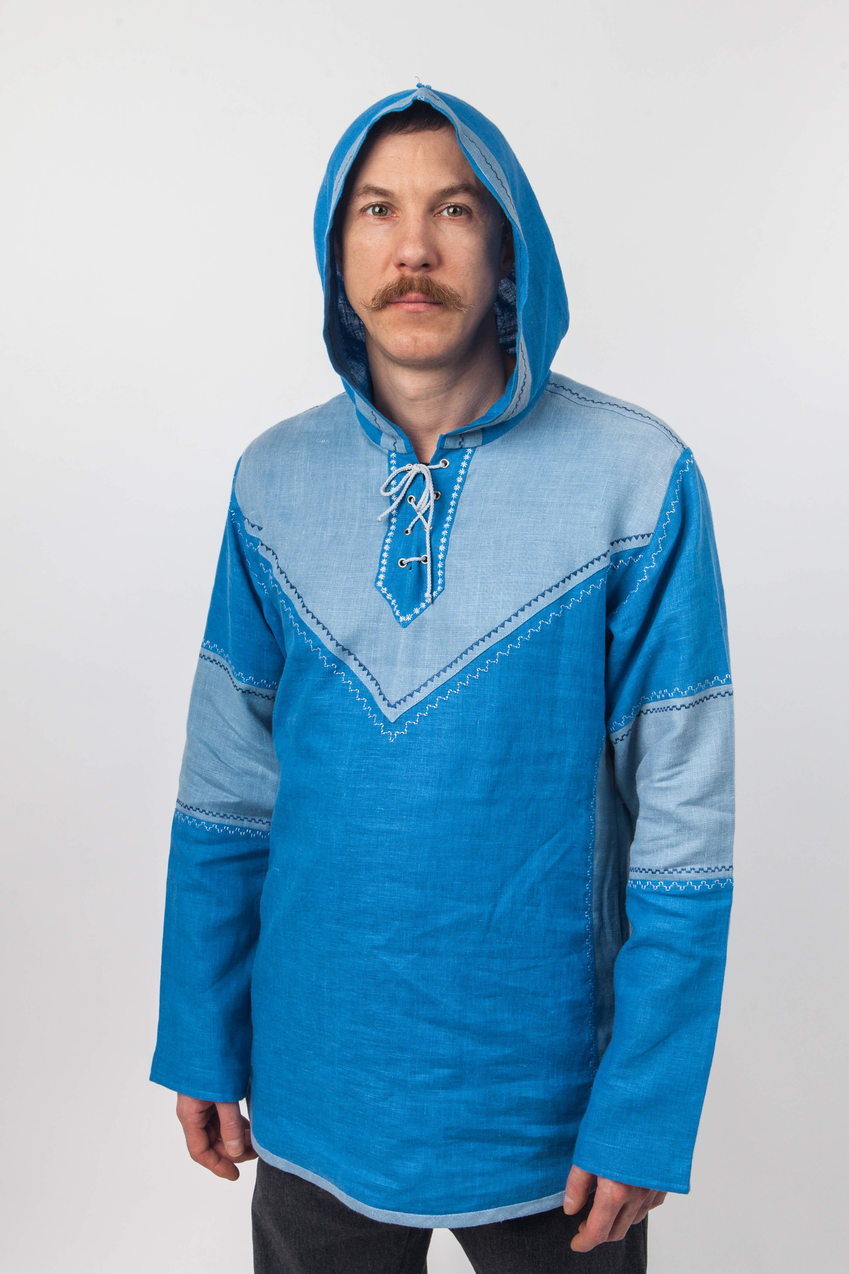 МатериалыЛенСтильповседневныйТип рубахиРубаха современнаяУзоробережный орнаментВоротникс капюшономУкрашение рубахиВставки из тканиЕдиница измеренияшт -