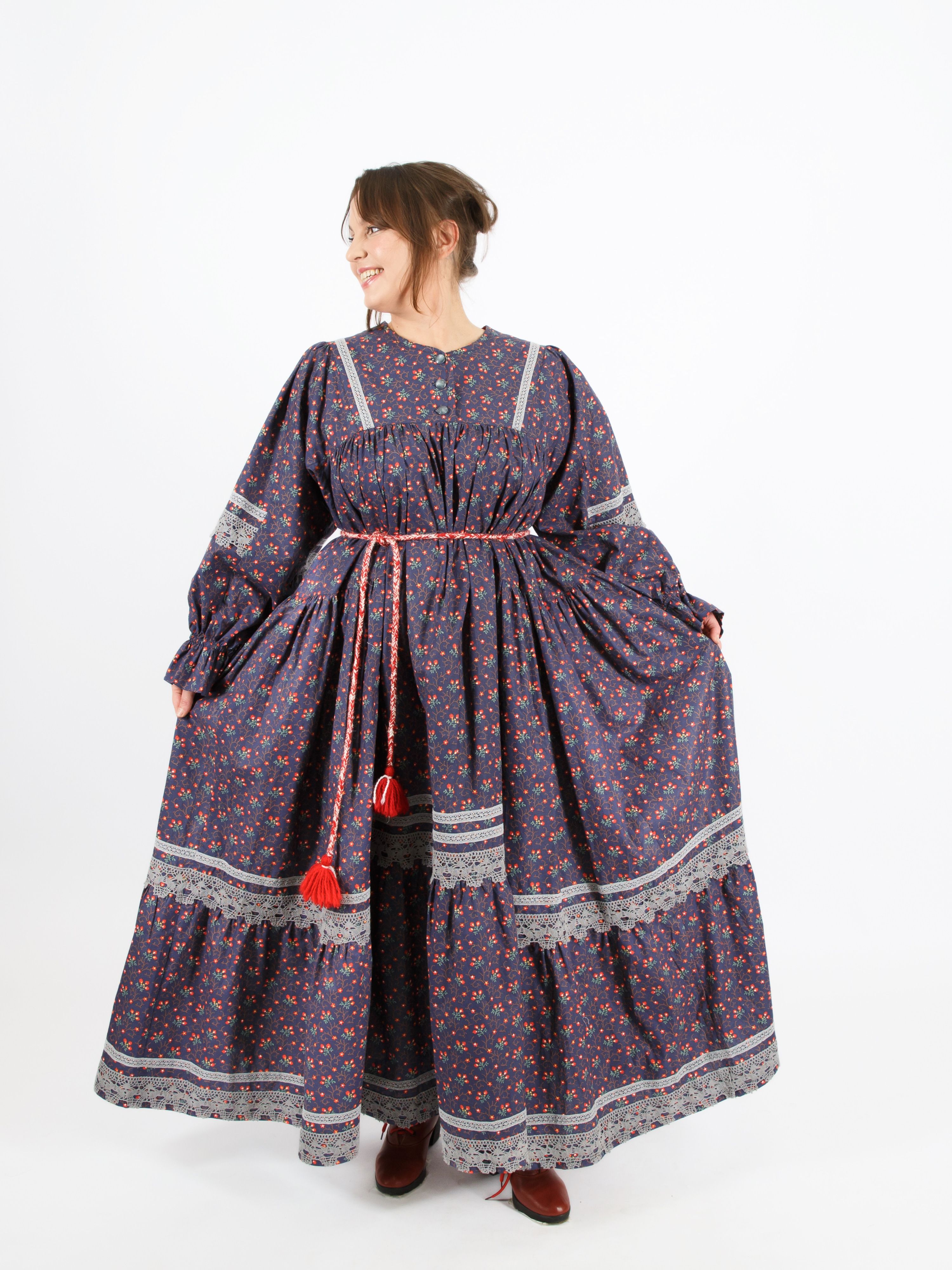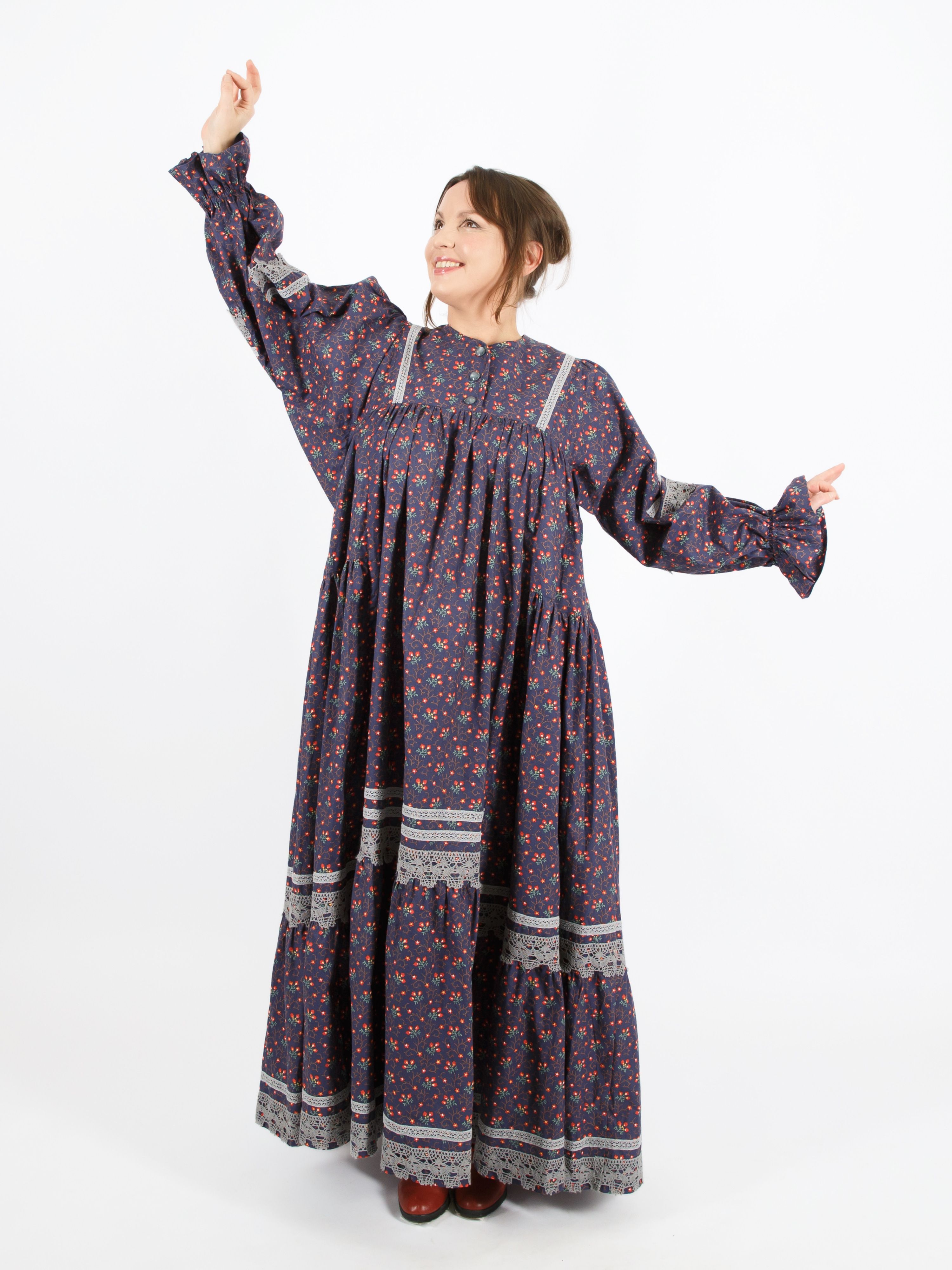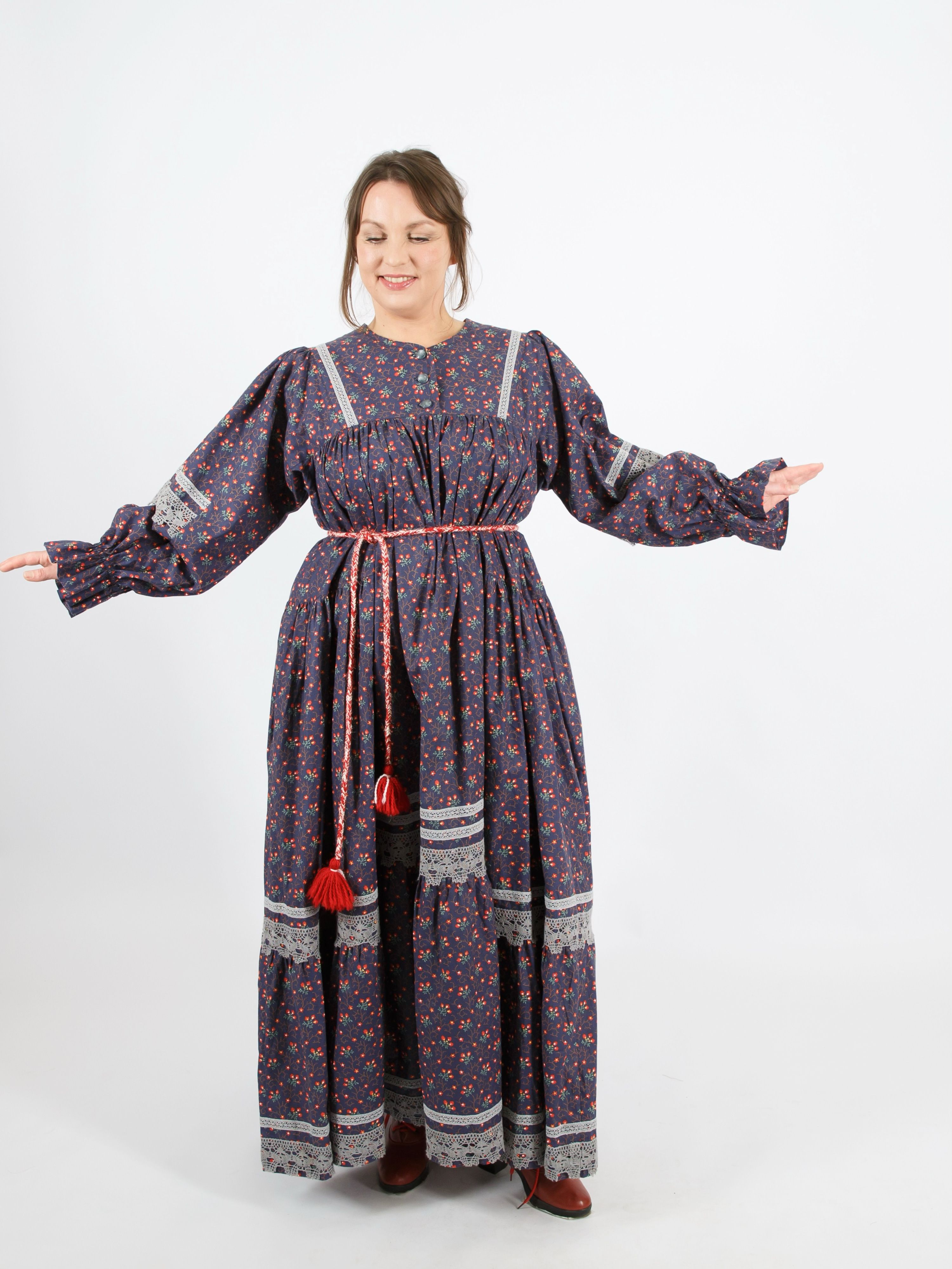 Модель "Душечка" - состоит из 3х традиционных элементов одежды: фартука, русской рубахи и сарафана. Самое красивое и оригинальное платье из коллекции "Душечка". Есть карманы.