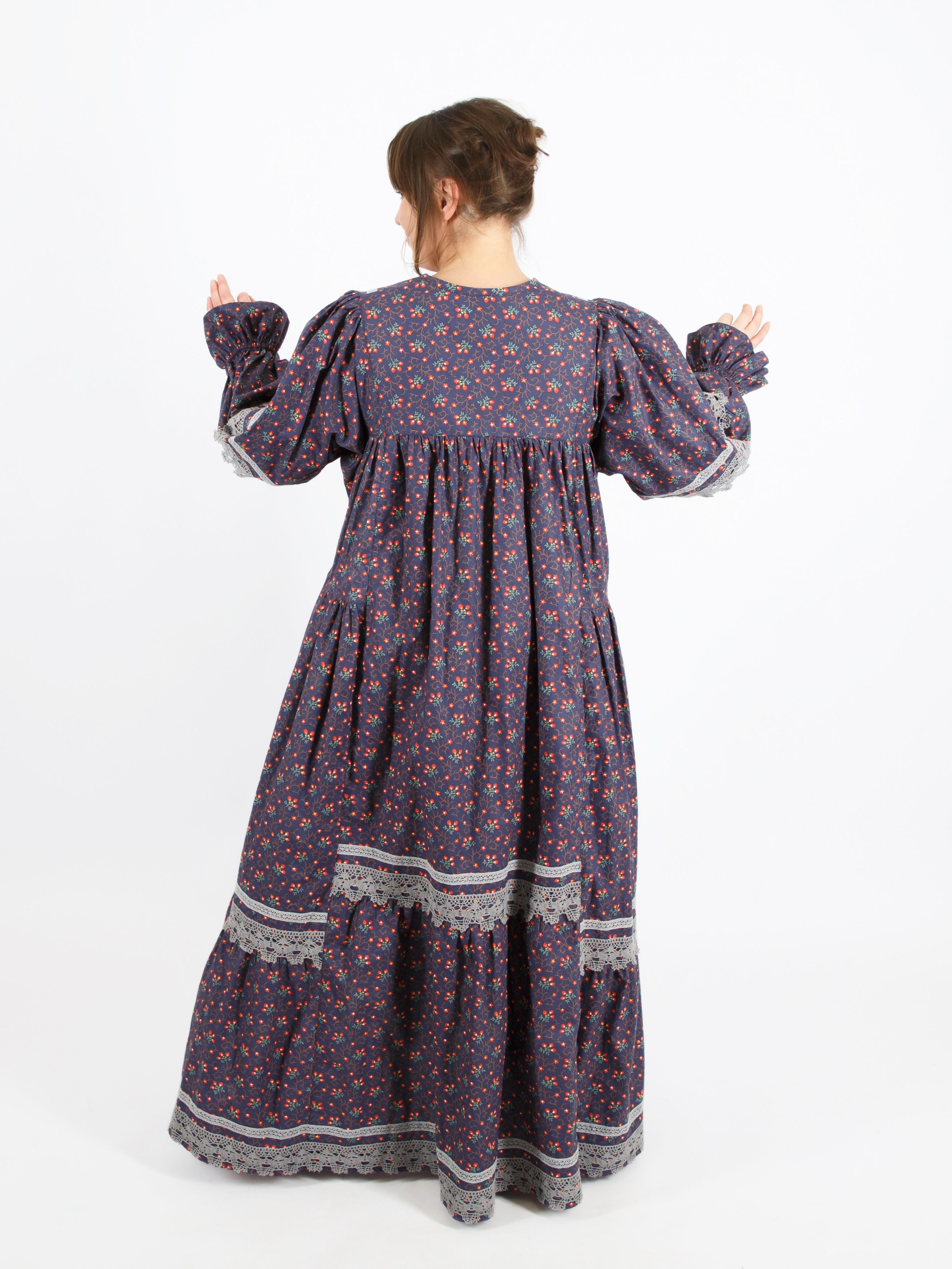Платье выполнено из хлопка высокого качества. Платье просторное и приятное к телу. Украшено кружевными вставками.