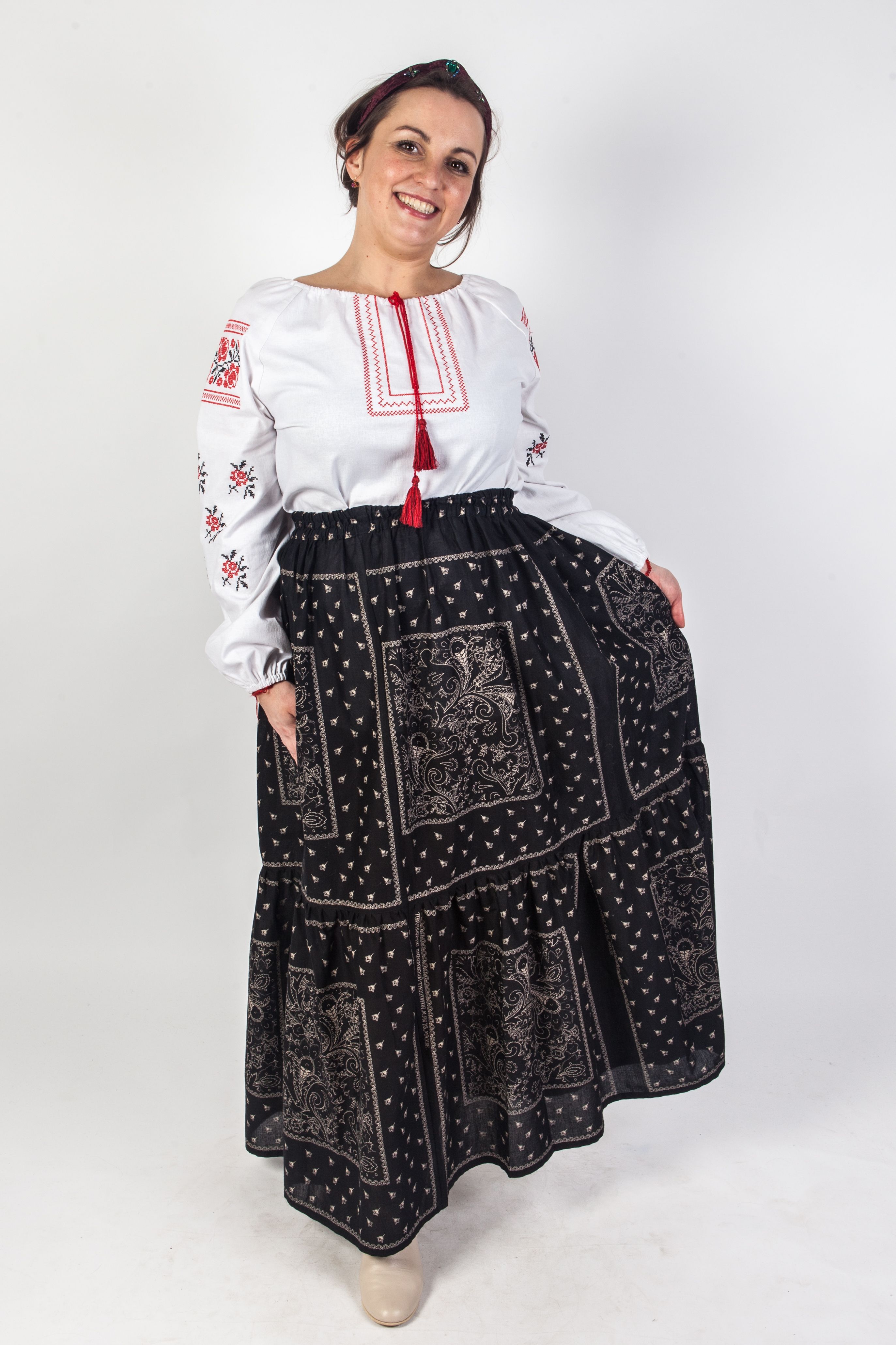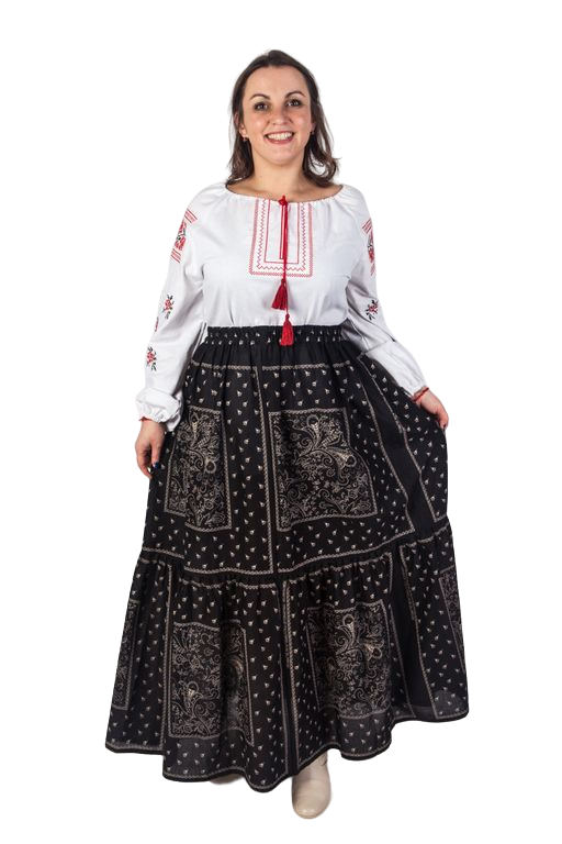 Черная легкая юбка с орнаментом классических русских "огурцов".