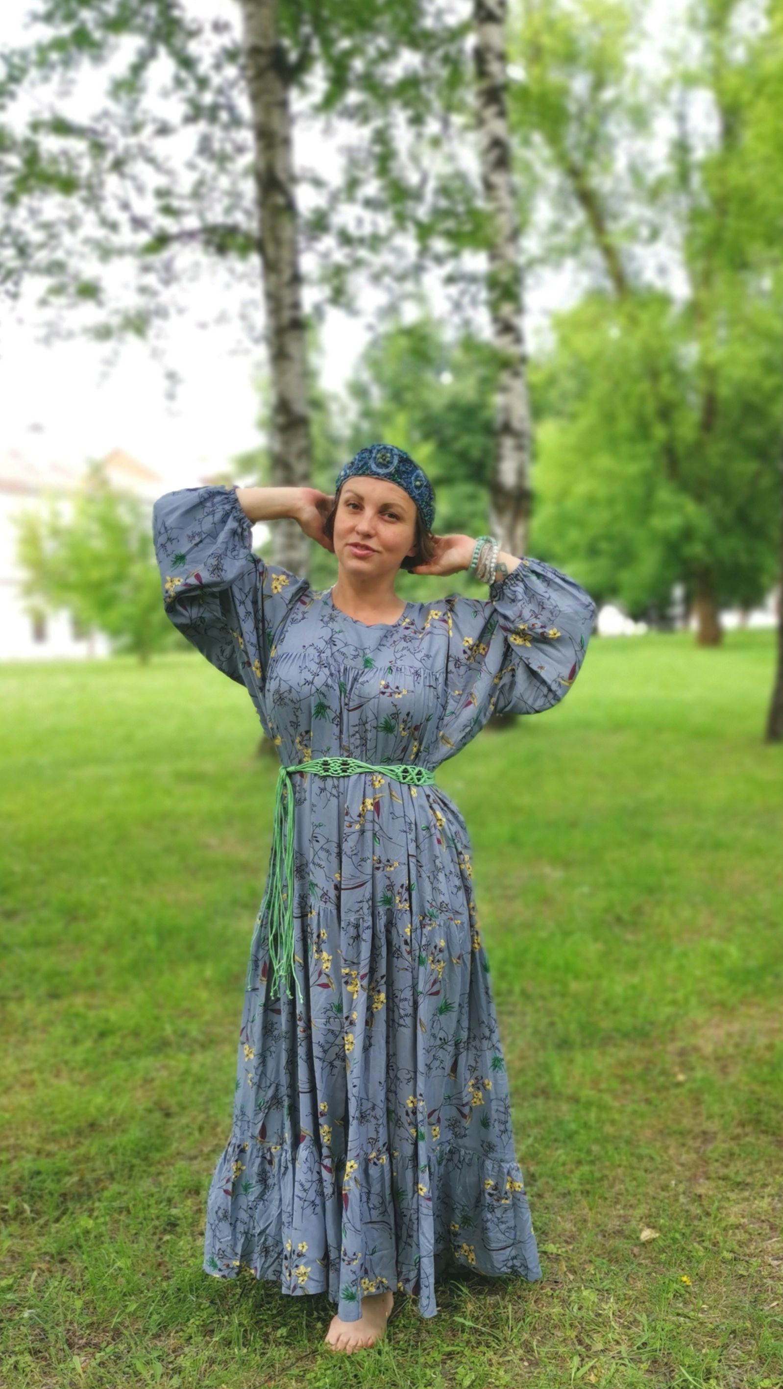 Длинный и просторный рукав на резинке, ластовица и свободный крой создают комфортную атмосферу внутри платья.