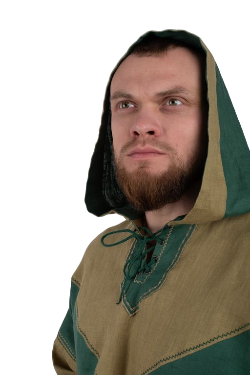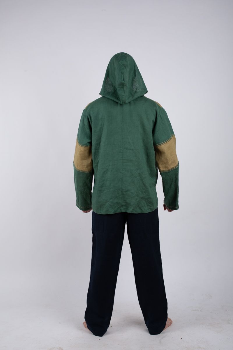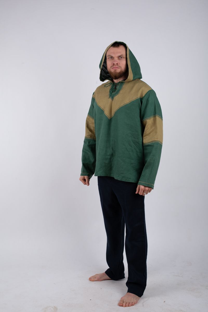 Мужская рубашка с капюшоном для повседневной жизни. Стилизация древней рубахи, времен богатырей и викингов.