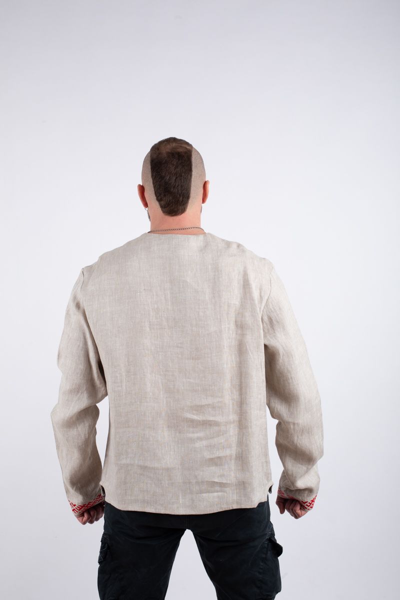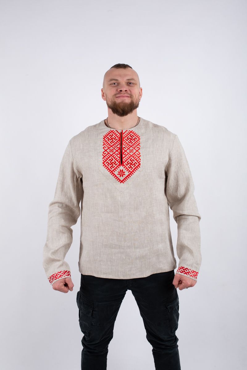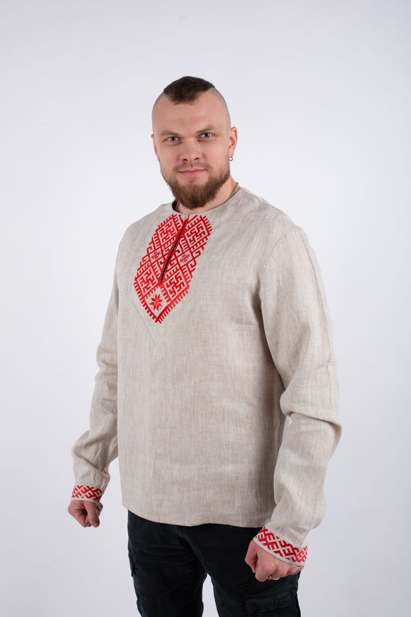 Современный крой, вточной рукав, рубаха без стойки.