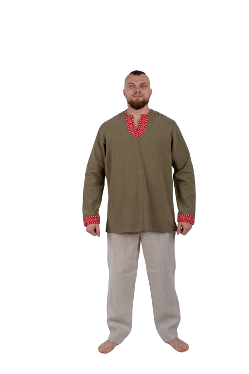 Рубашка современного кроя по типу льняной футболки с длинным рукавом.
