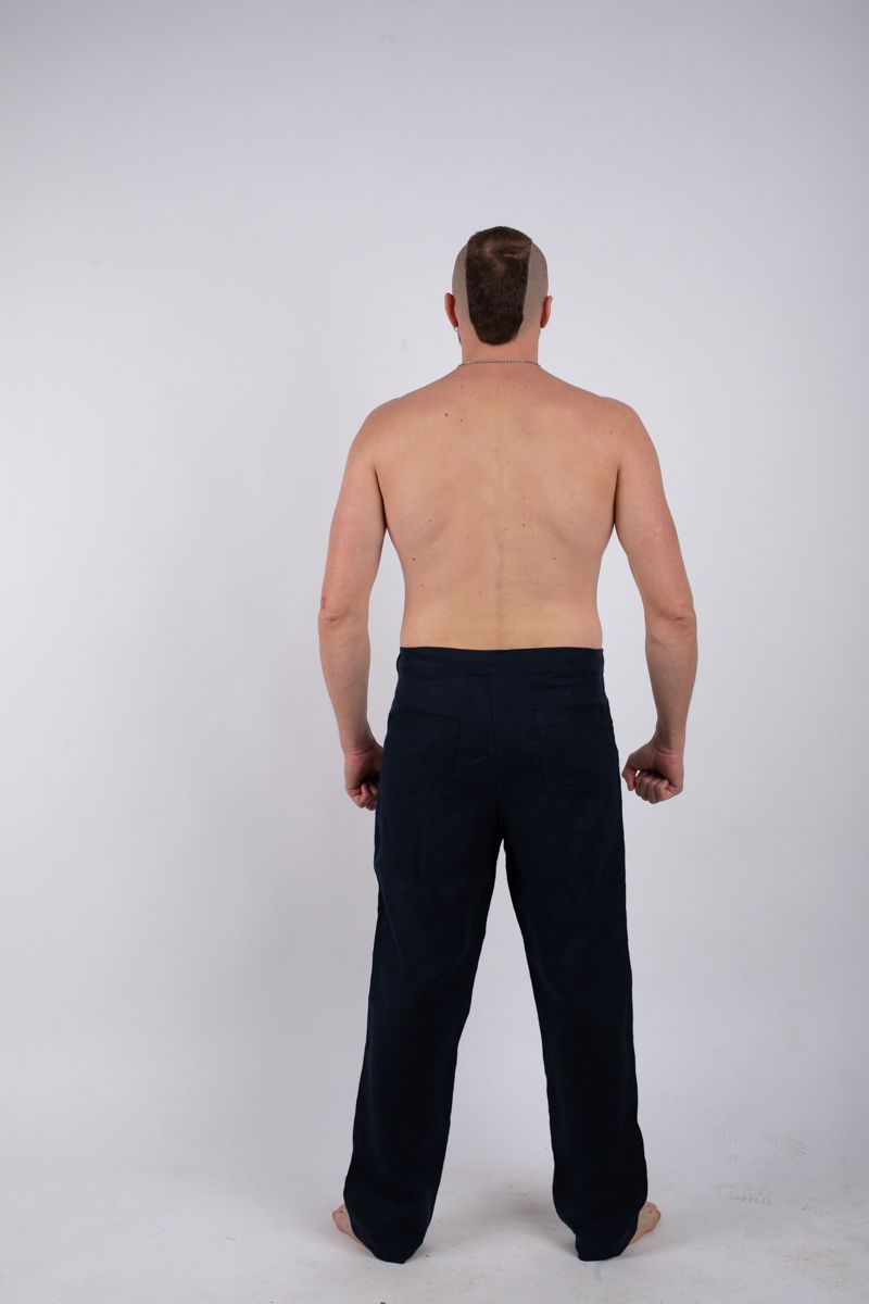 Льняные брюки прямого кроя с гульфиком.