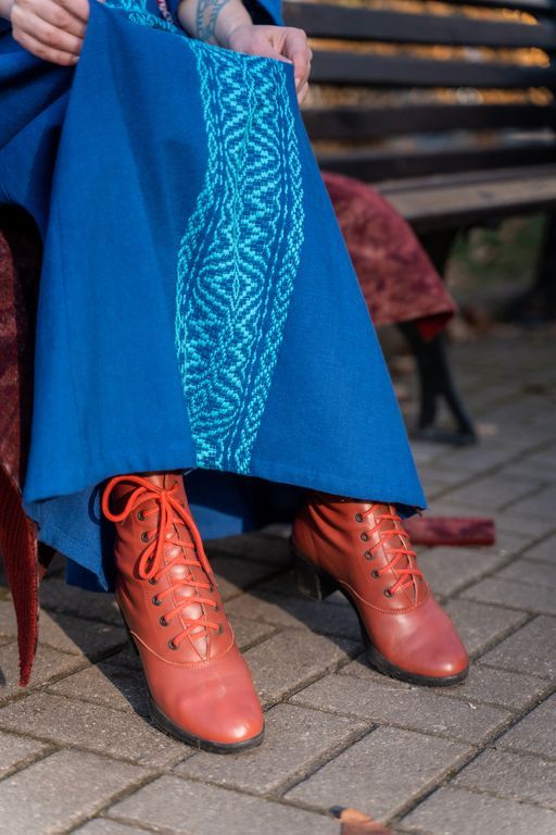 Повседневной платье, традиционного кроя с тканым орнаментом.