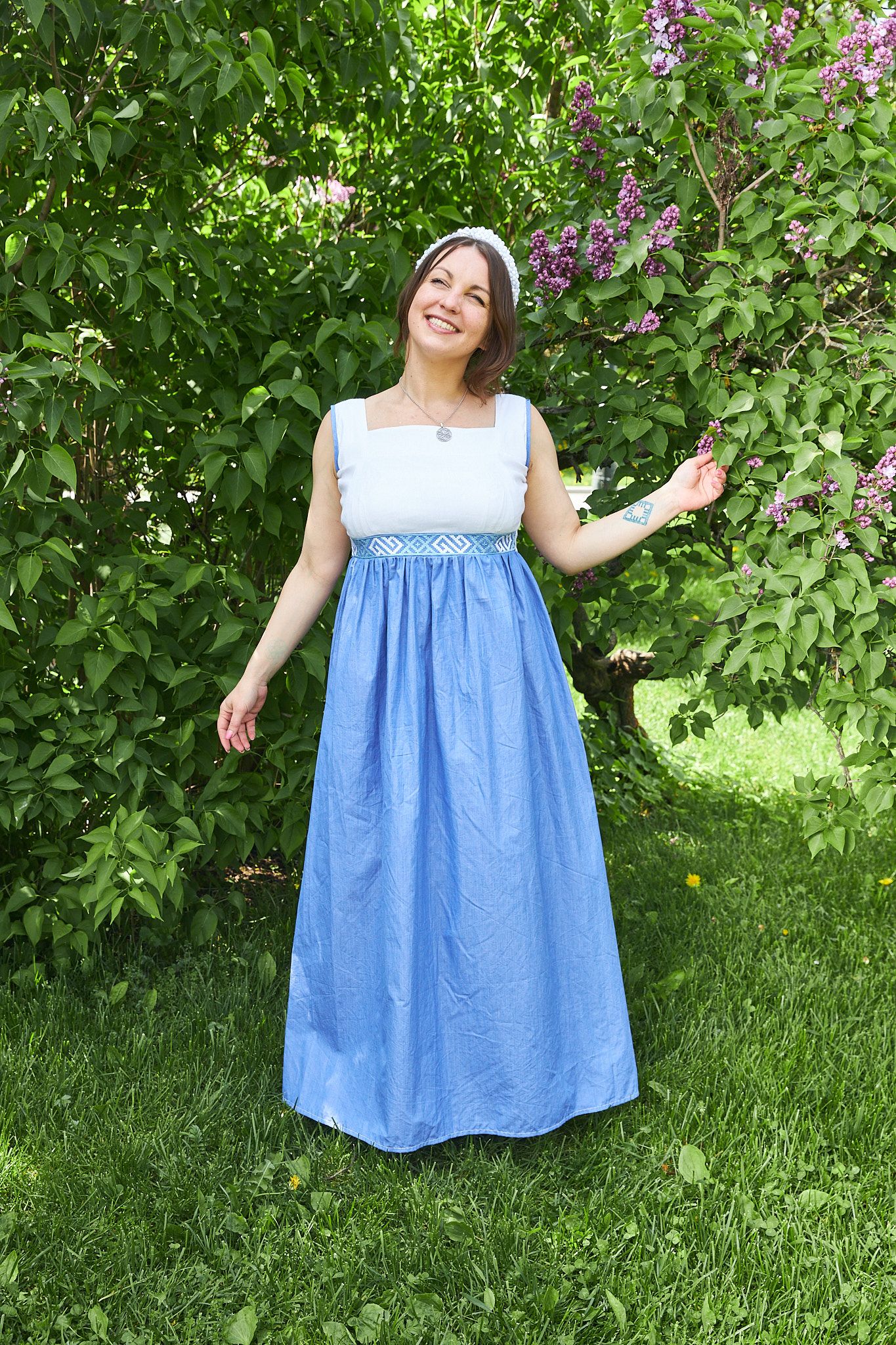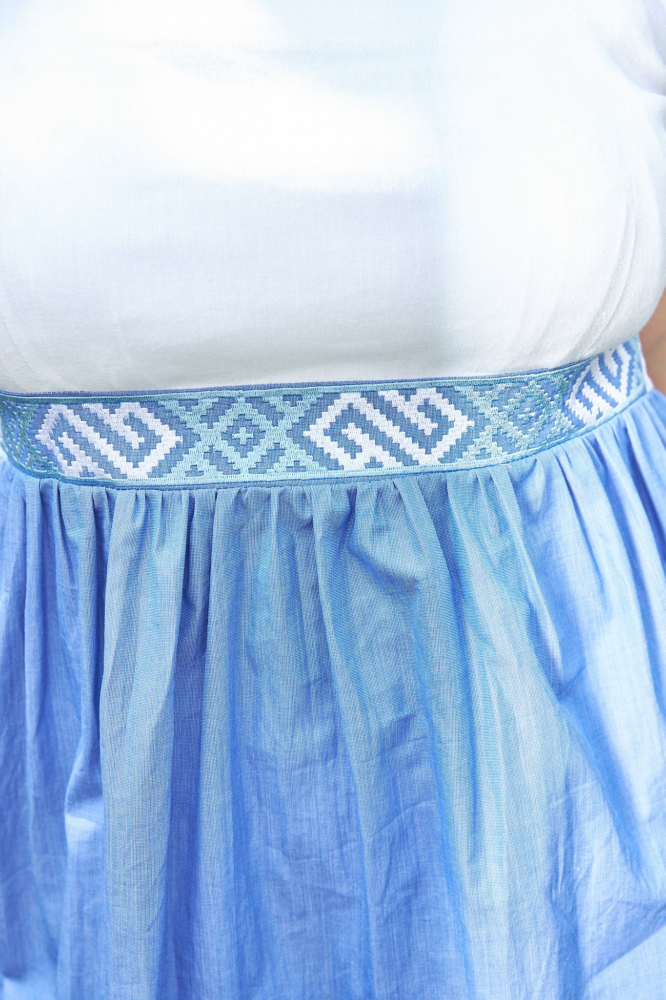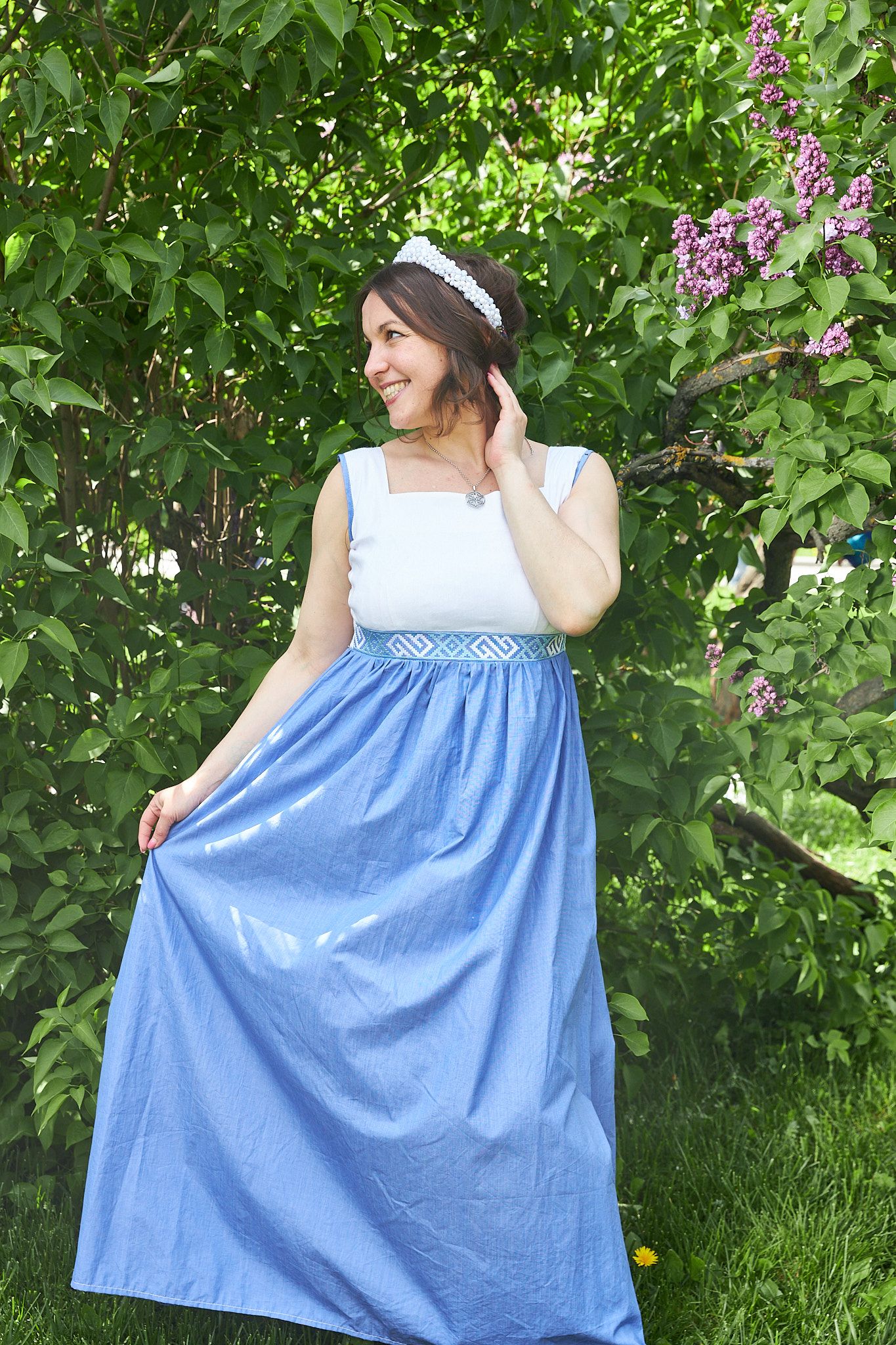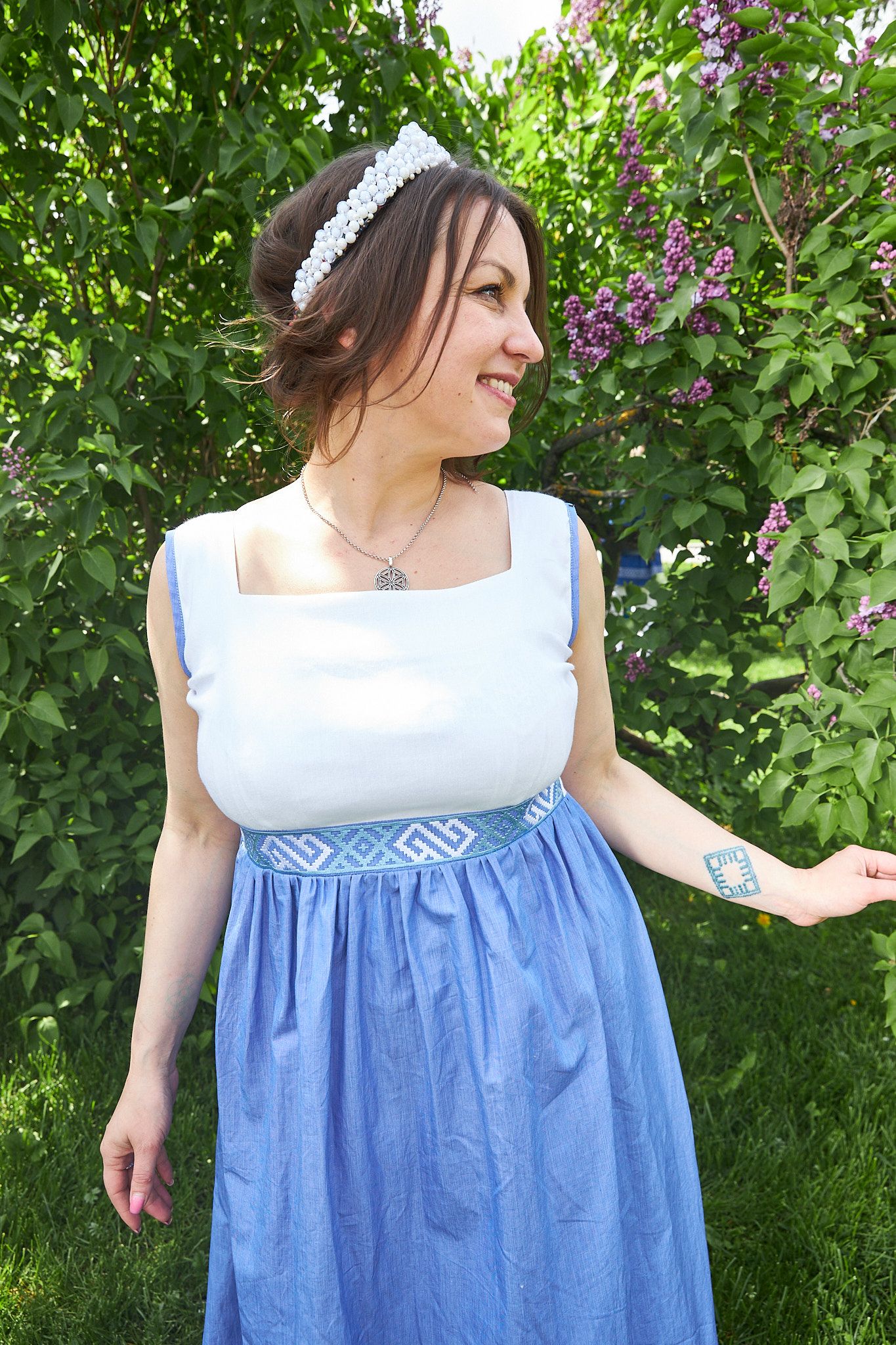Прекрасный сарафан на лето в русском стиле. Богатая вышивка под грудью, значение орнамента олицетворяет единение огня и воды.