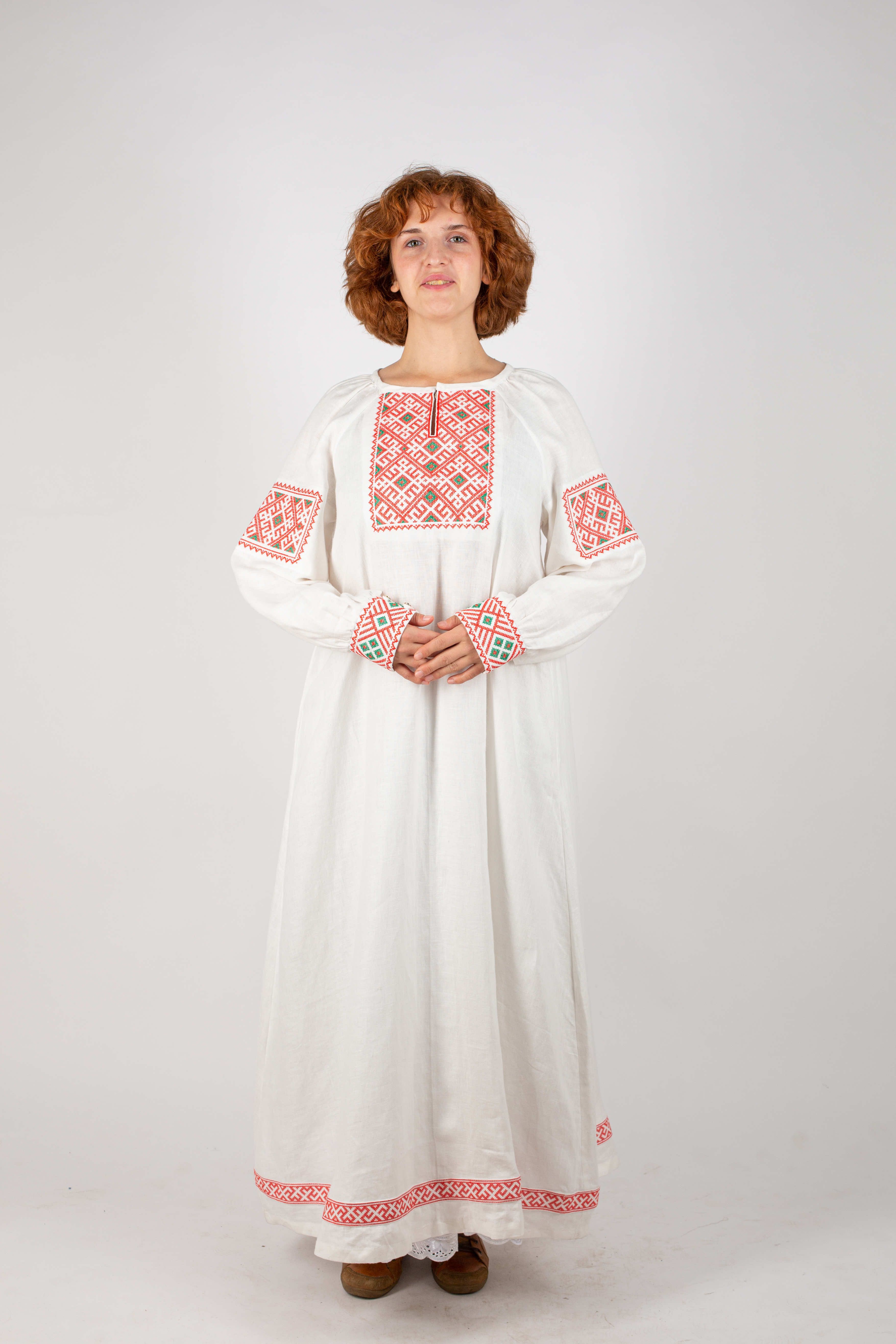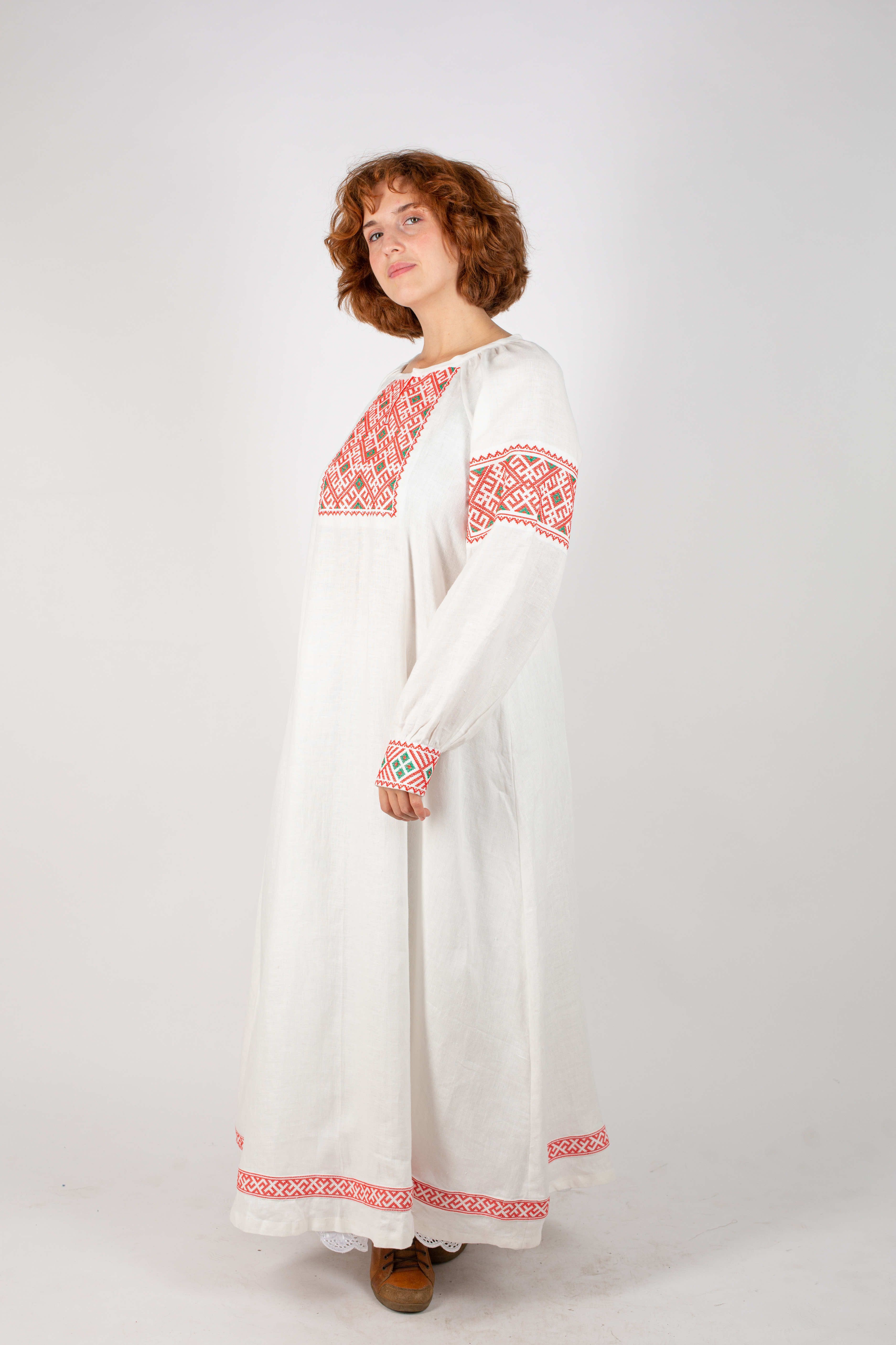 Размер48ЦветбелыйДлинаВ полСтильСлавянскийСоставлёнВышивкаестьФасонСвободное платье по русскому кроюСилуэтсвободныйЕдиница измеренияшт -