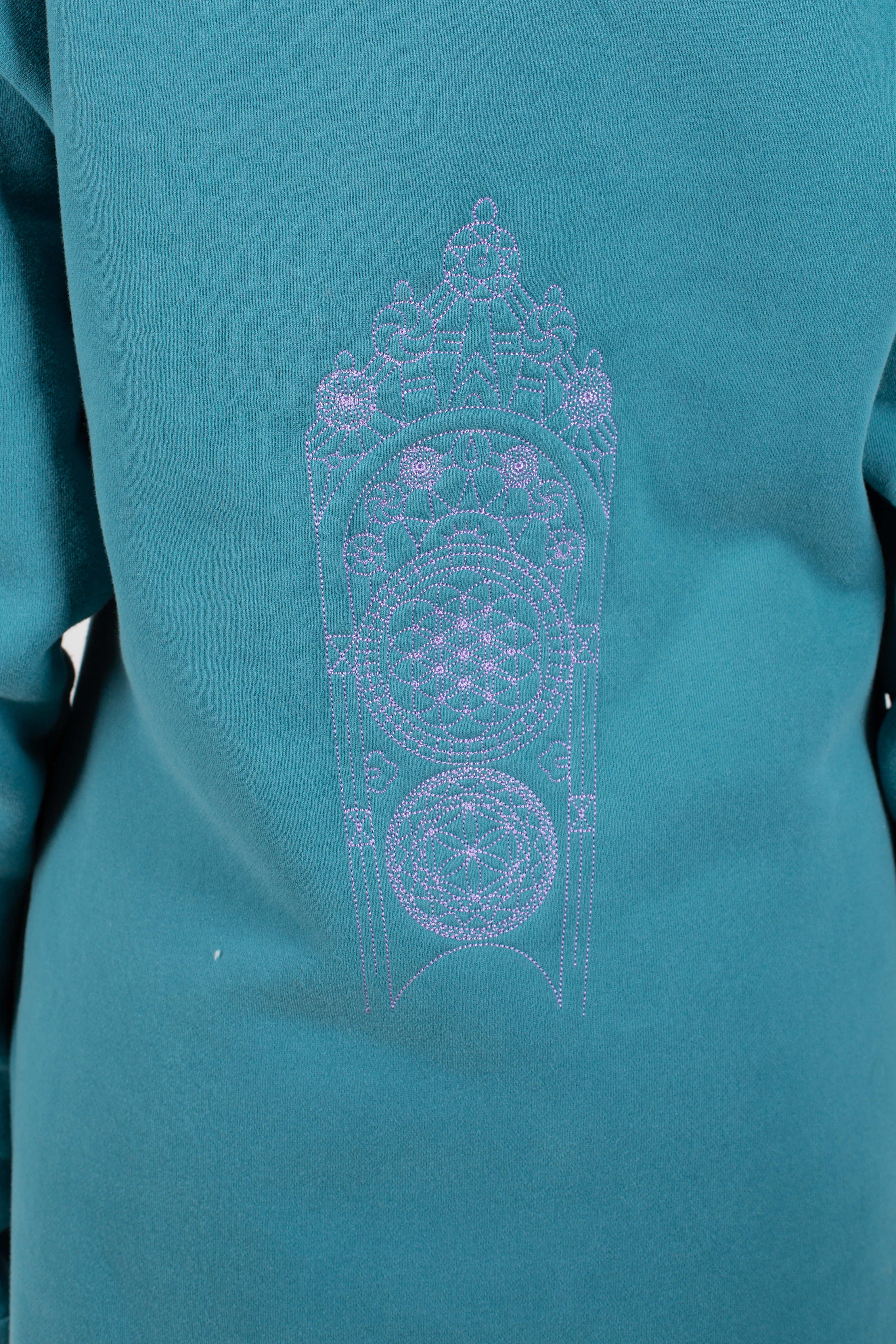 Вышивка на спине и внизу подола.