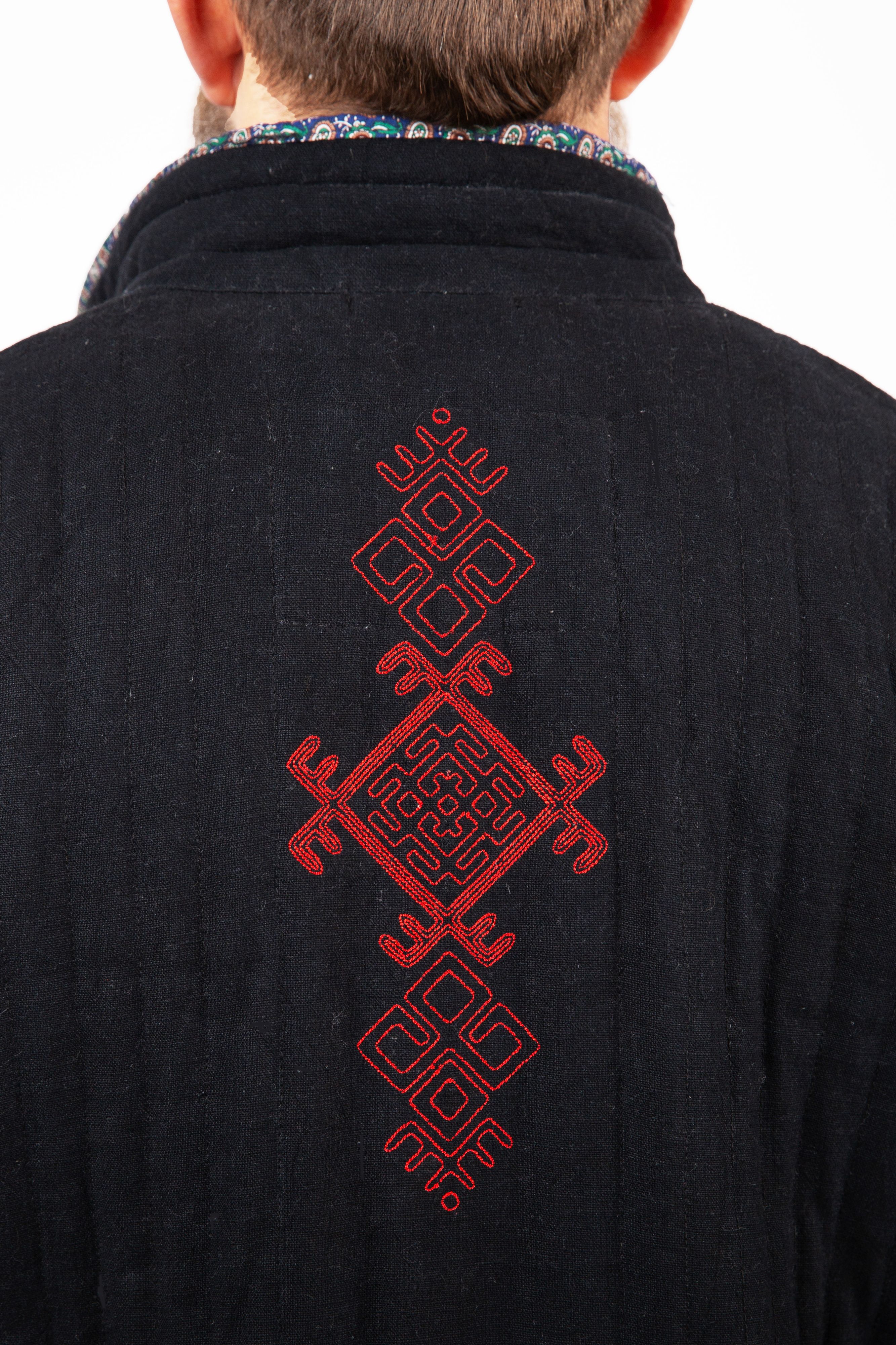 Куртку по своему желанию - выбрать цвет ткани, вышивку и подклад. Цена от этого не меняется.