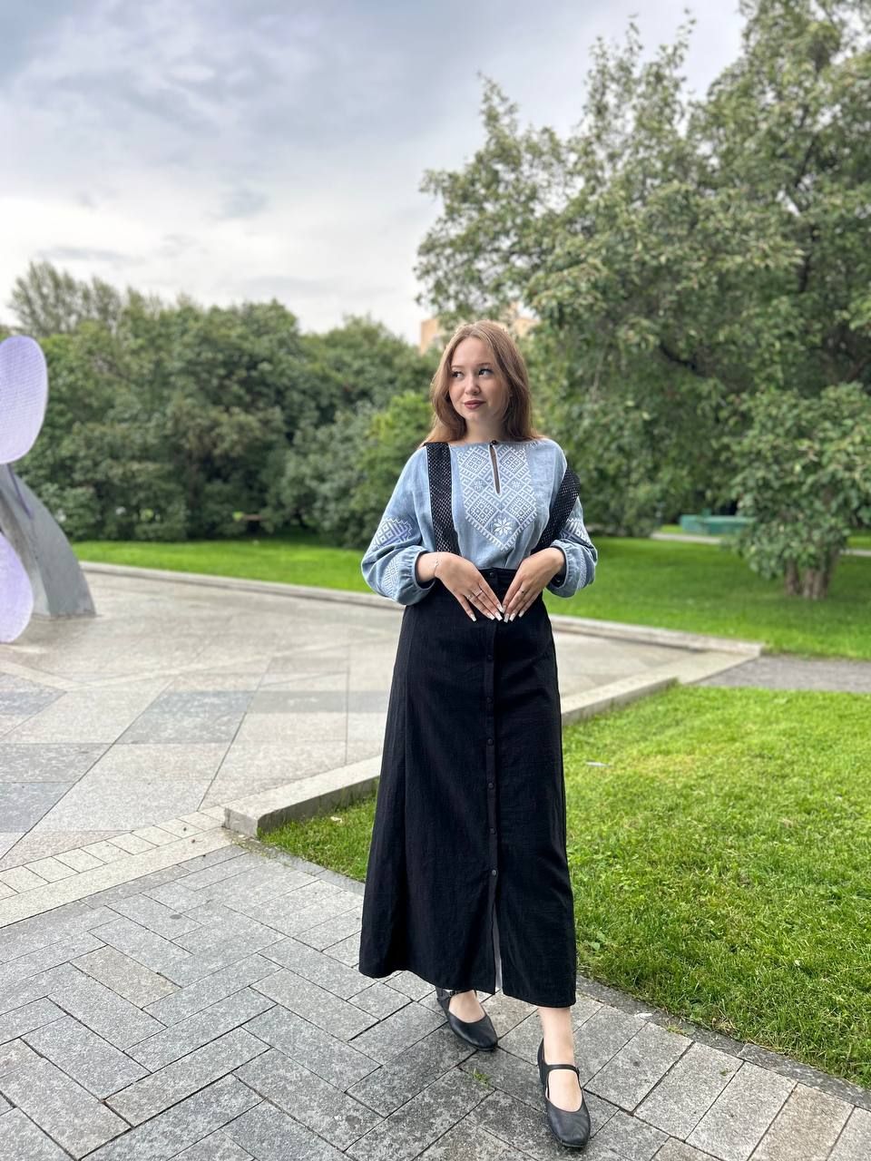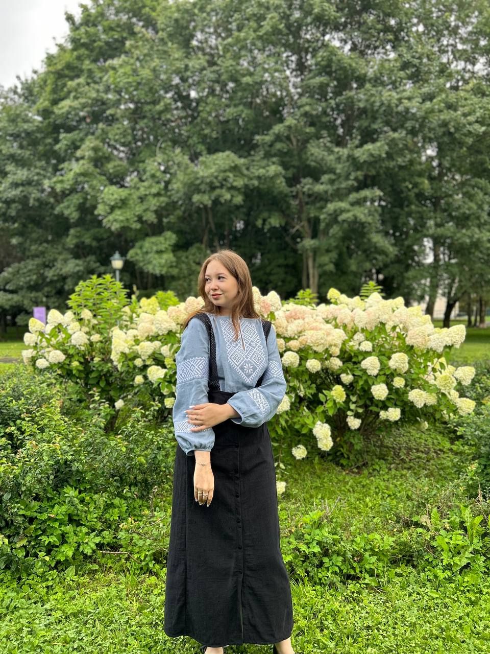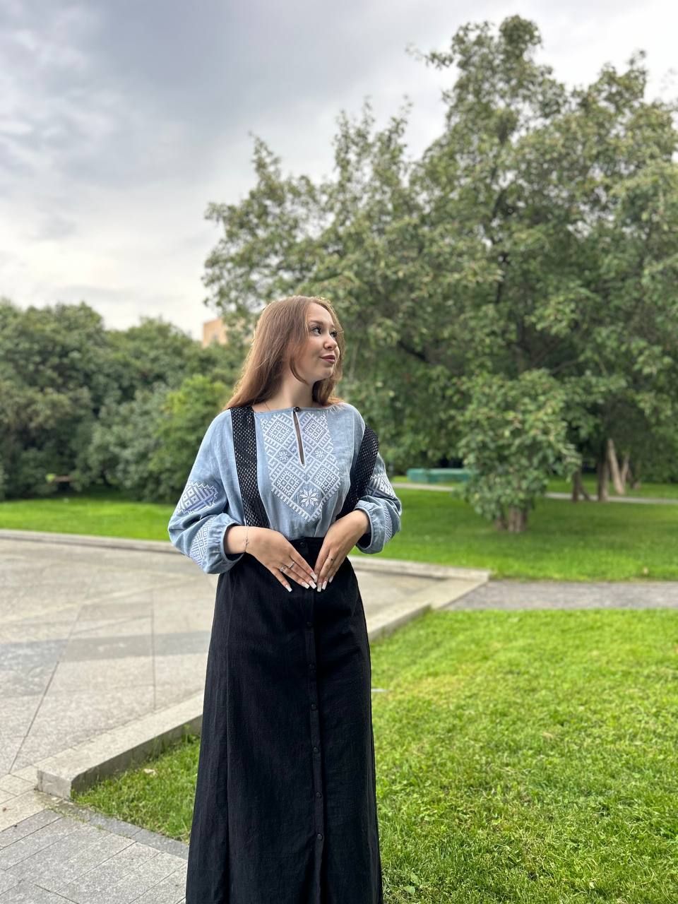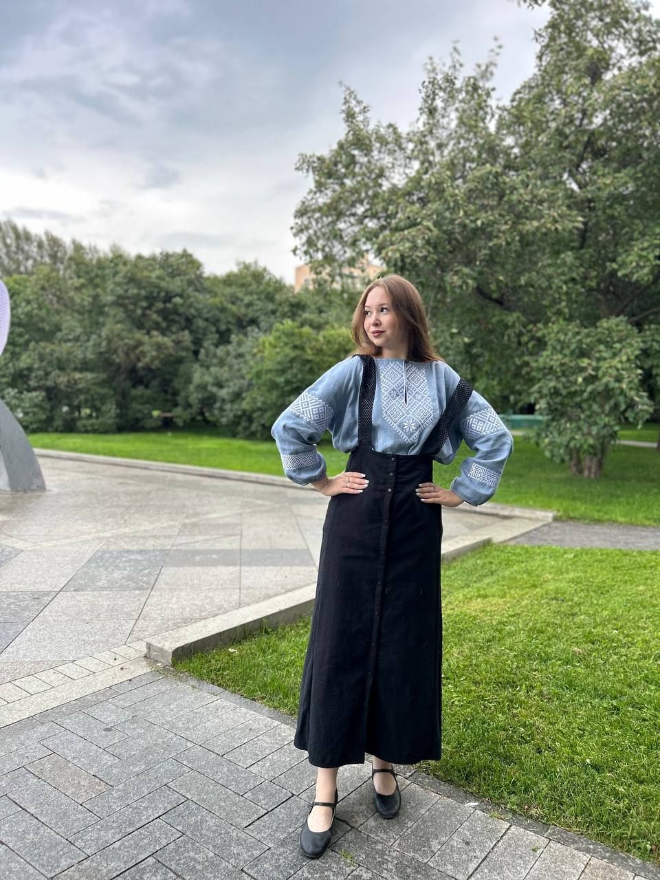 Этот образ собран из блузы про матерь и подгрудного сарафана, отличное и очень красивое сочетание для современной, повседневной жизни.