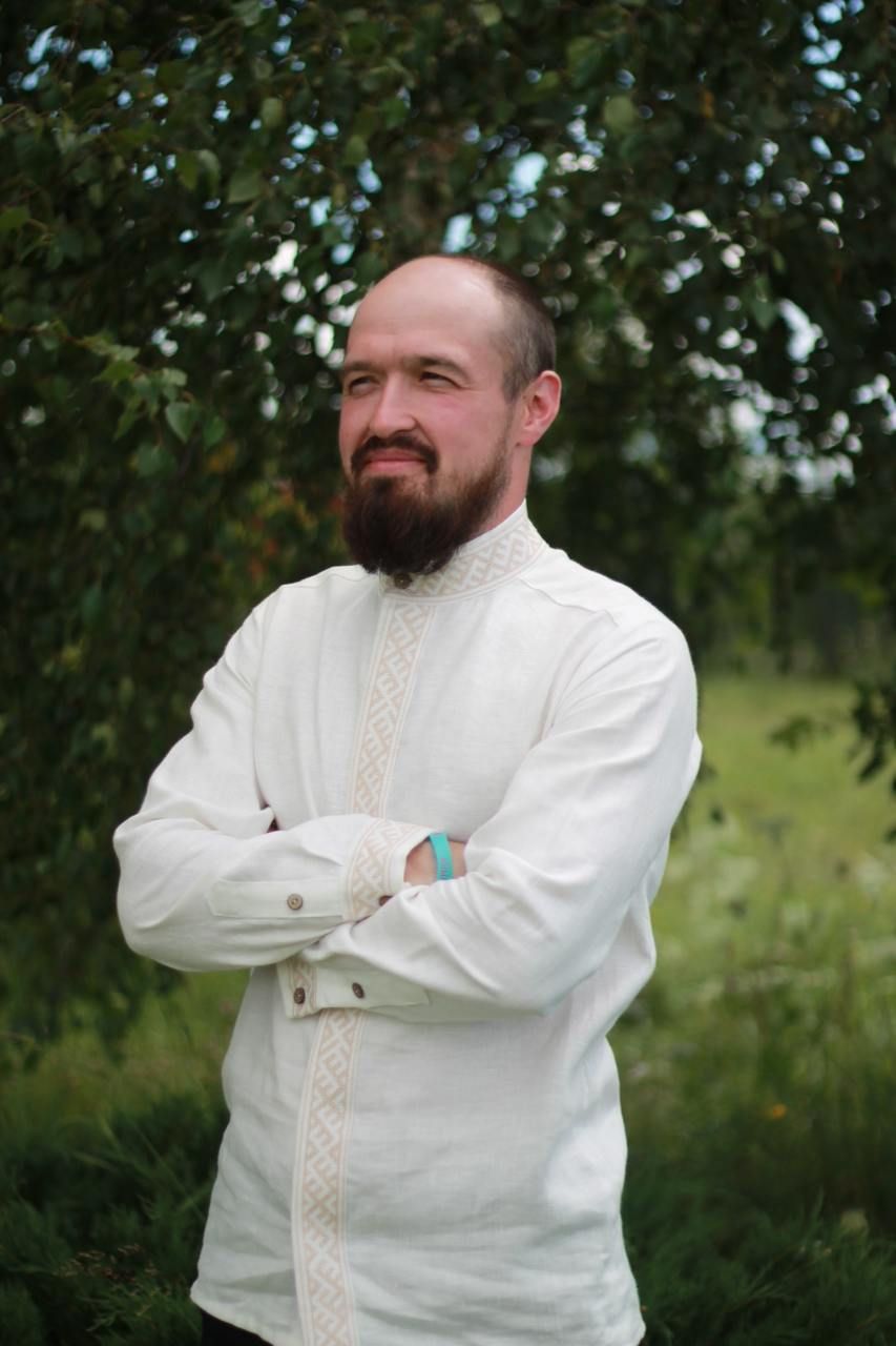 Рубаха сорочка "Деловая" мужская классическая, ворот-стойка или отложной. Обережная линия.