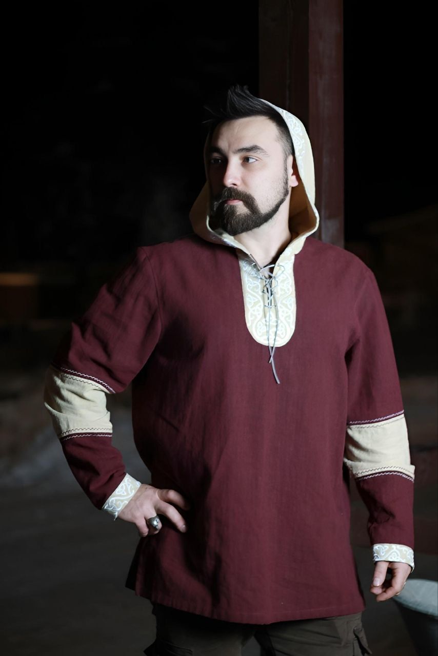 Рубаха в стиле викинга с капюшоном.