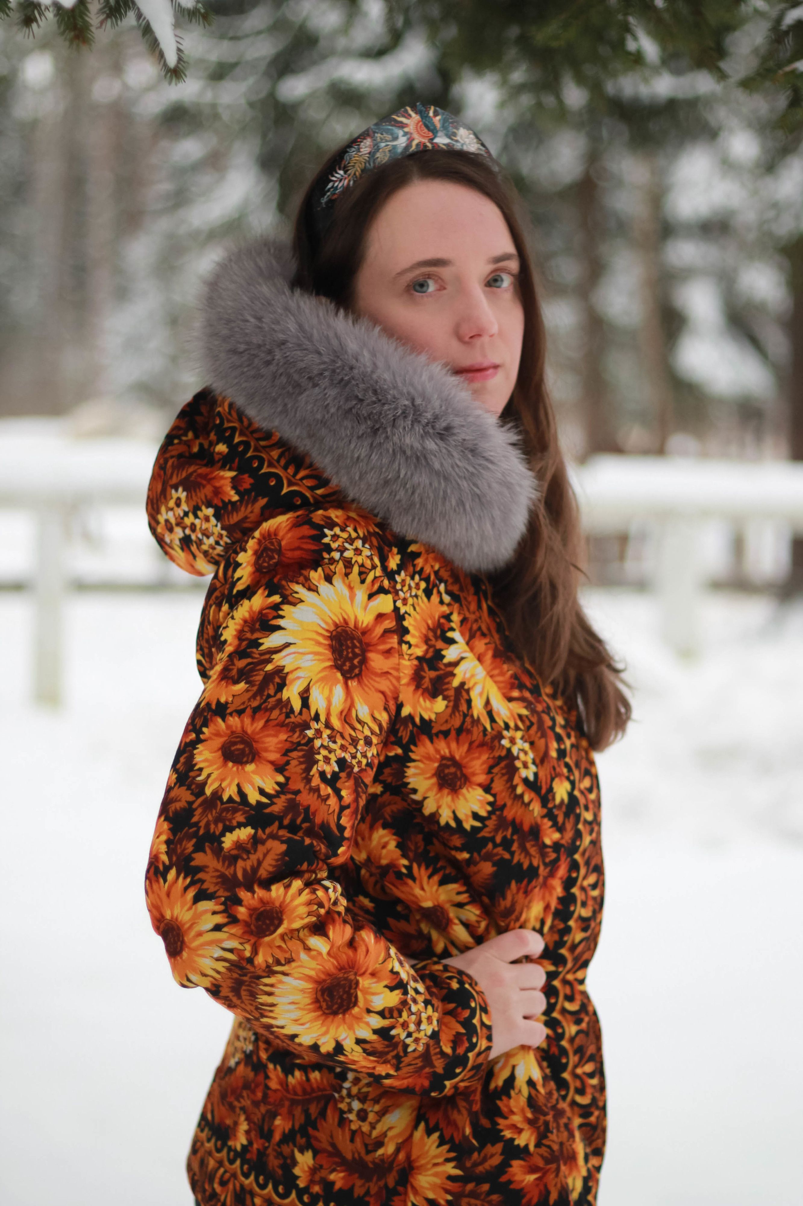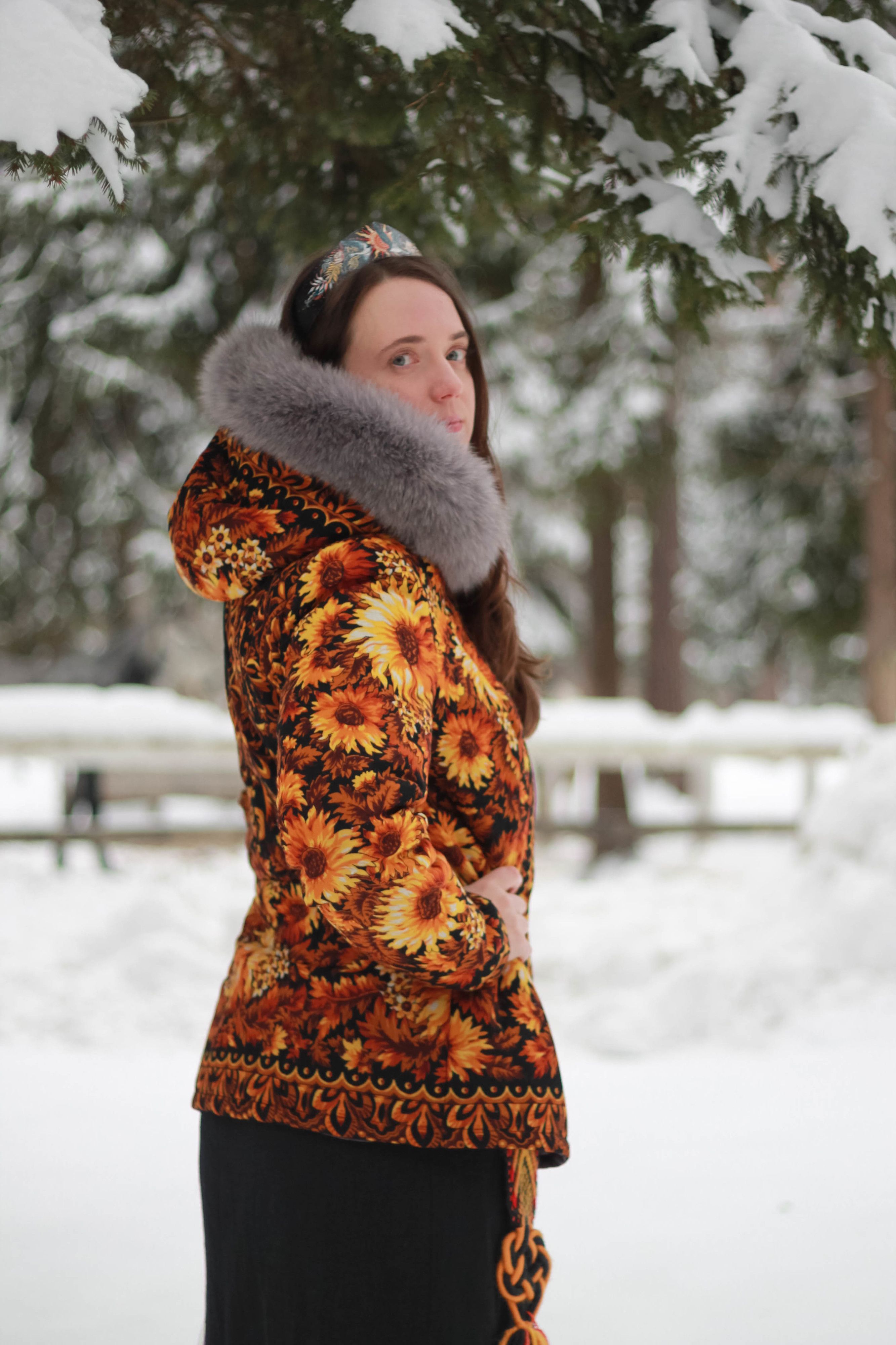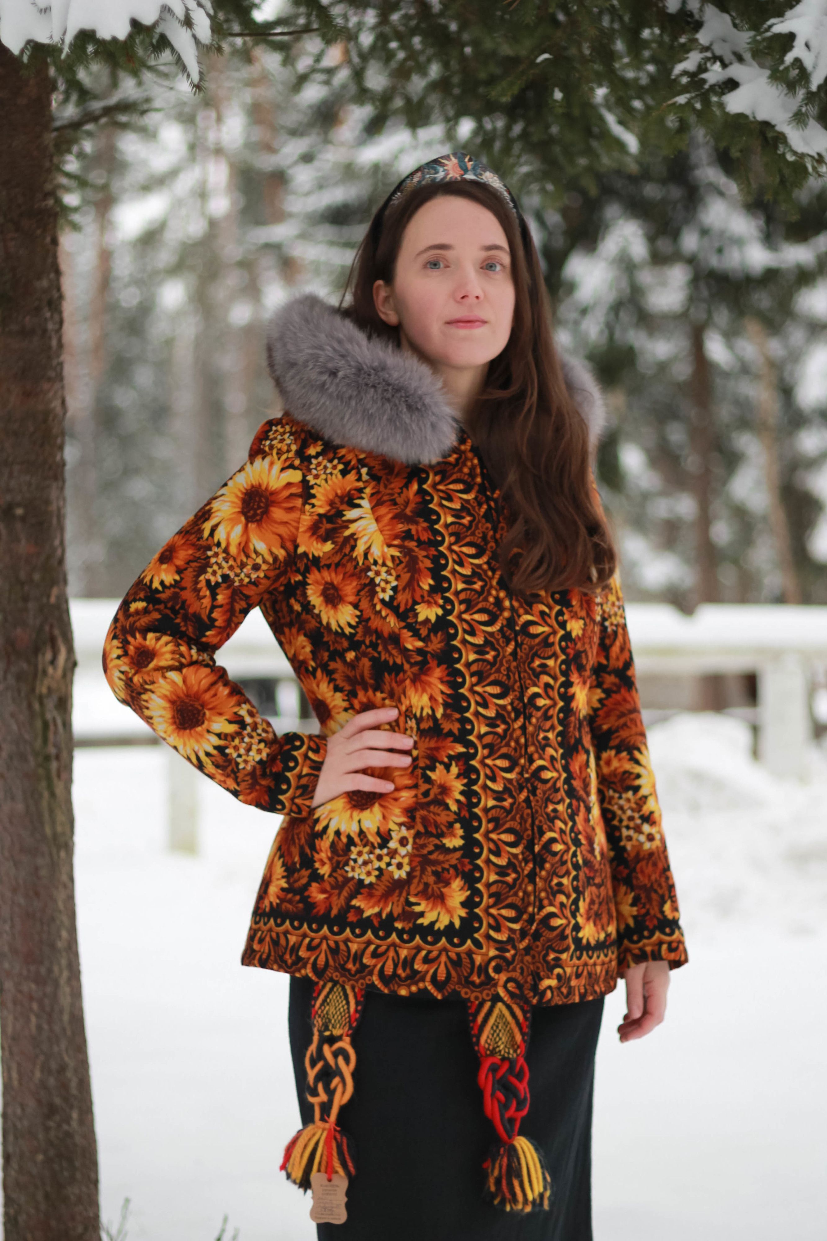 Артикул: Куртка из павлопосадского платка Солнце