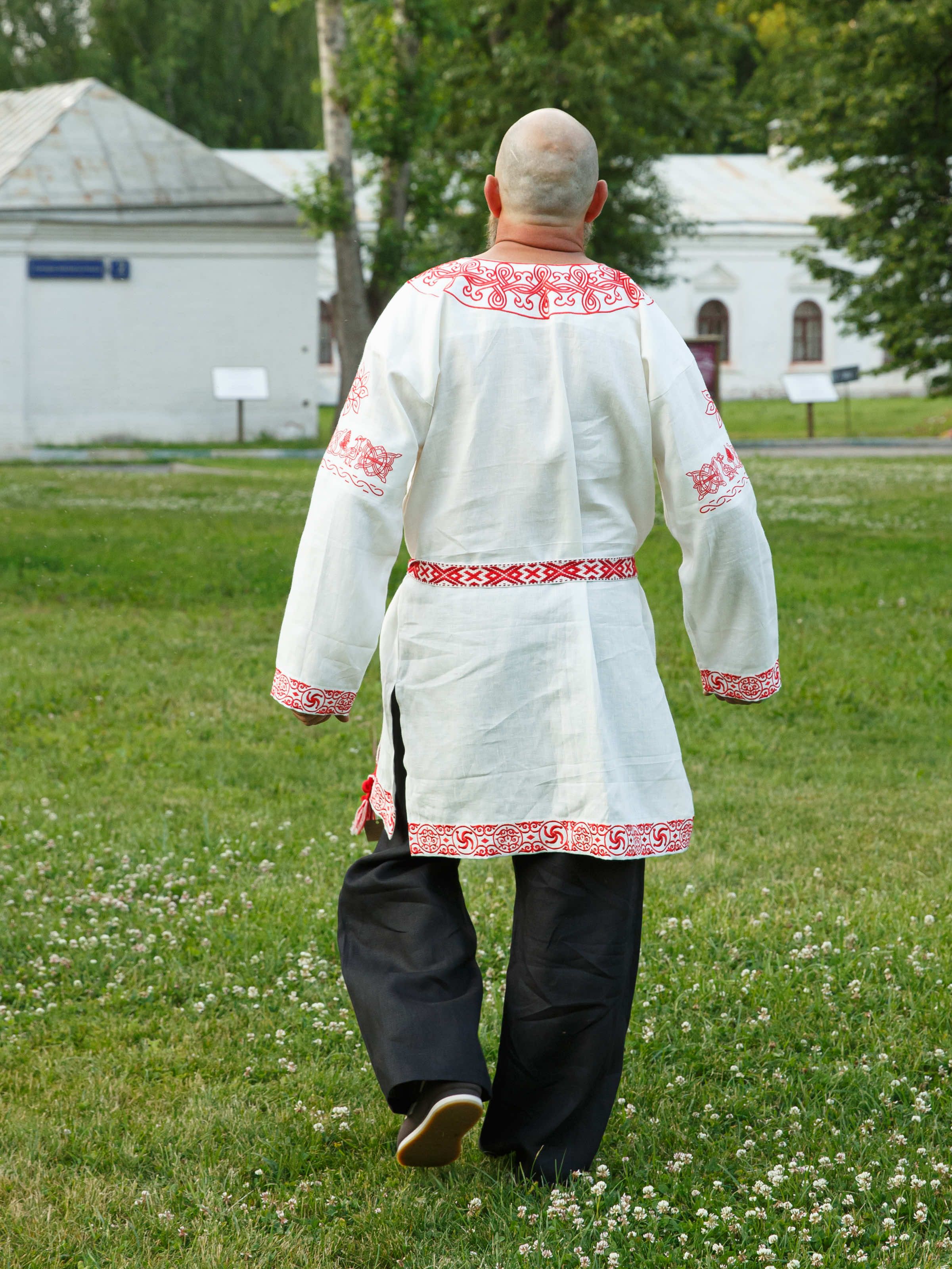 Традиционный крой с ластовицей — для свободы движения и дыхания.