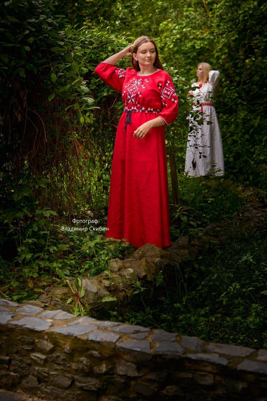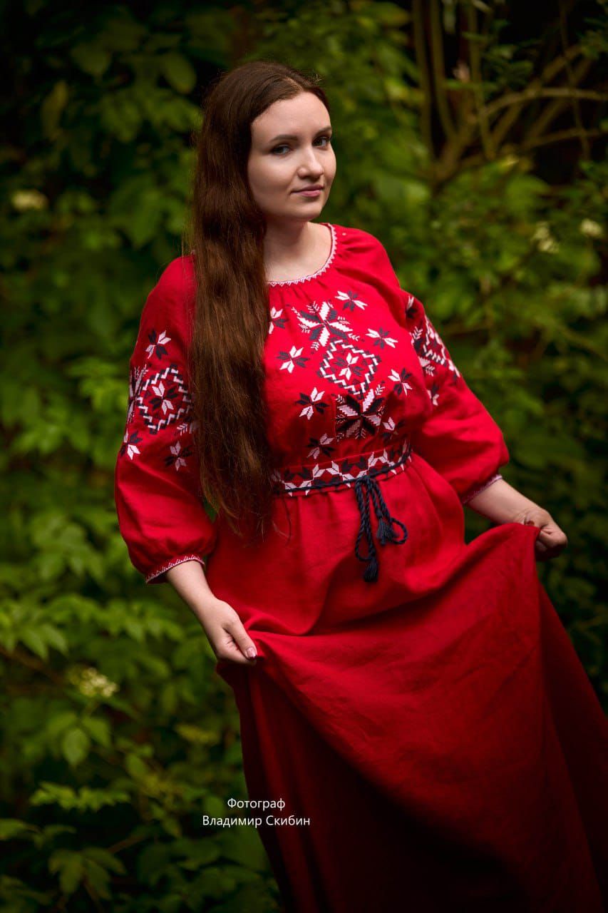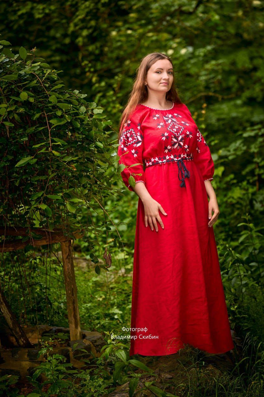 Платье славянское "Звездные половинки" красное
