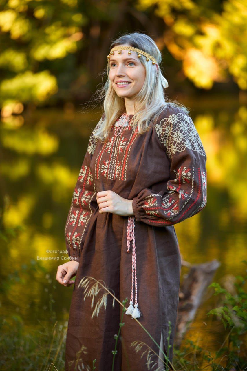 Славянское льняное платье на каждый день.