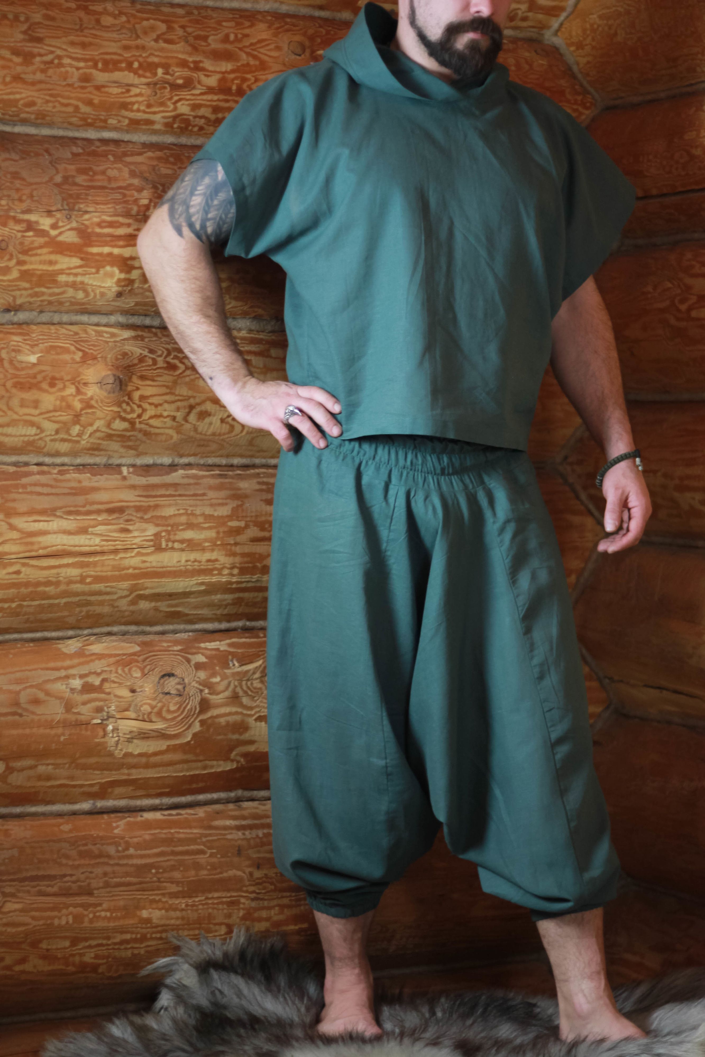Свободные штаны банщика из конопли, с ластовицами в стиле портов или восточных шаровар.