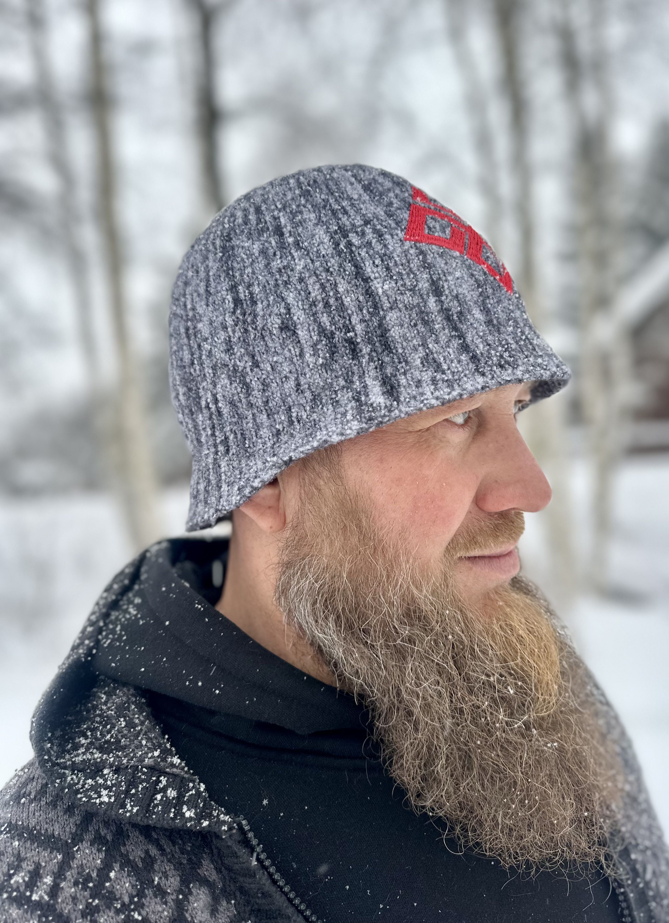 Шапка банная - шерсть мериноса 100% вязаная с вышивкой