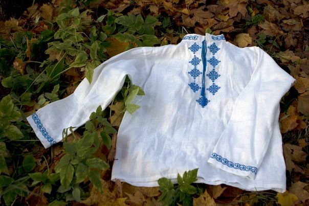 Рубаха мужская традиционного кроя с воротом стойка и ластовицей.