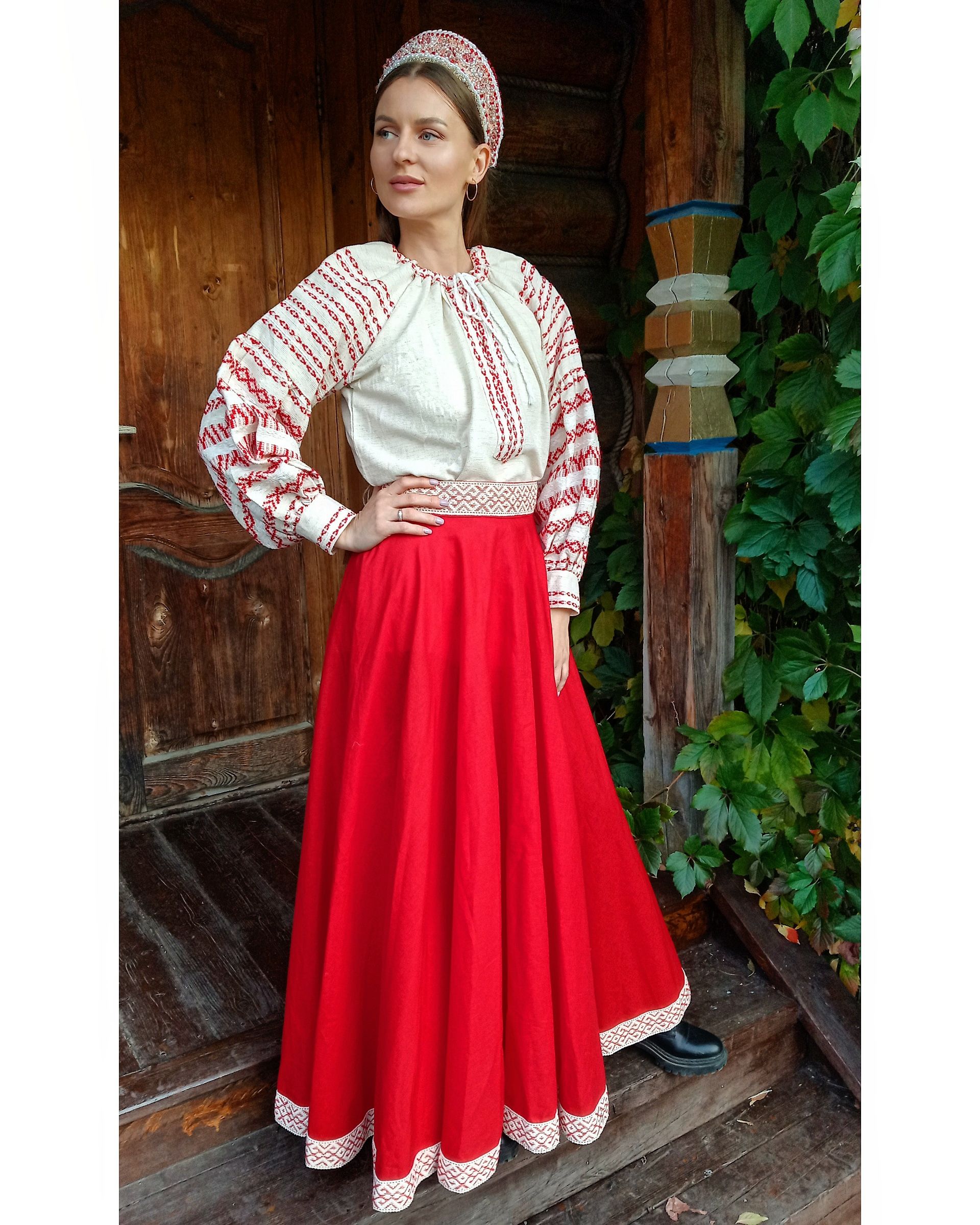 Материал соткан на деревянных станах по старинным техниками, ткань 100% лён сделана вручную.