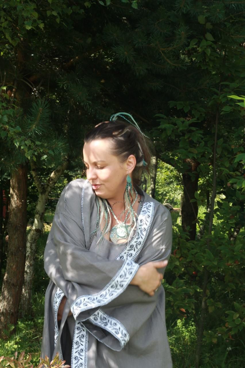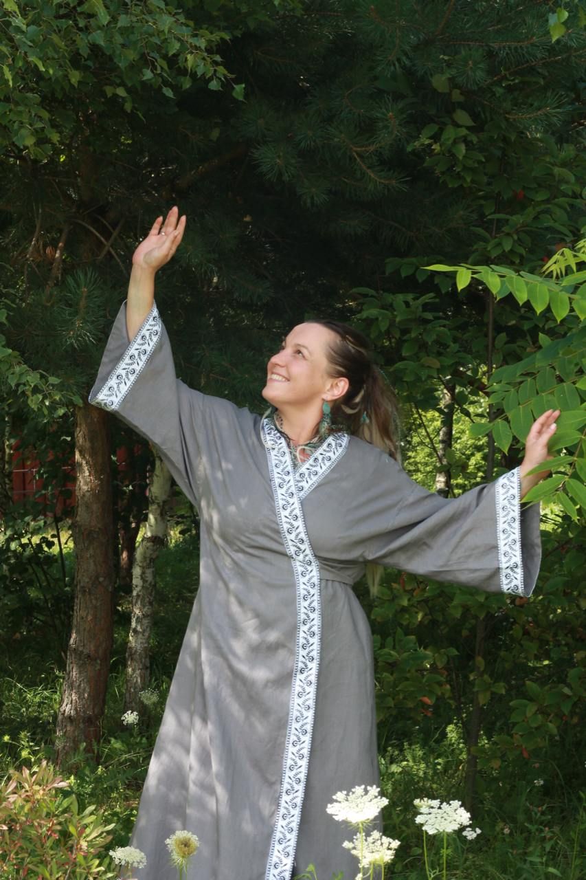 Халат-кимоно из конопли с вышивкой.