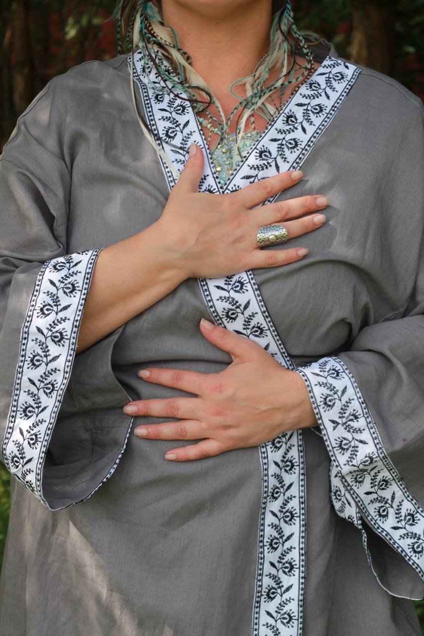 Халат-кимоно из конопли с вышивкой