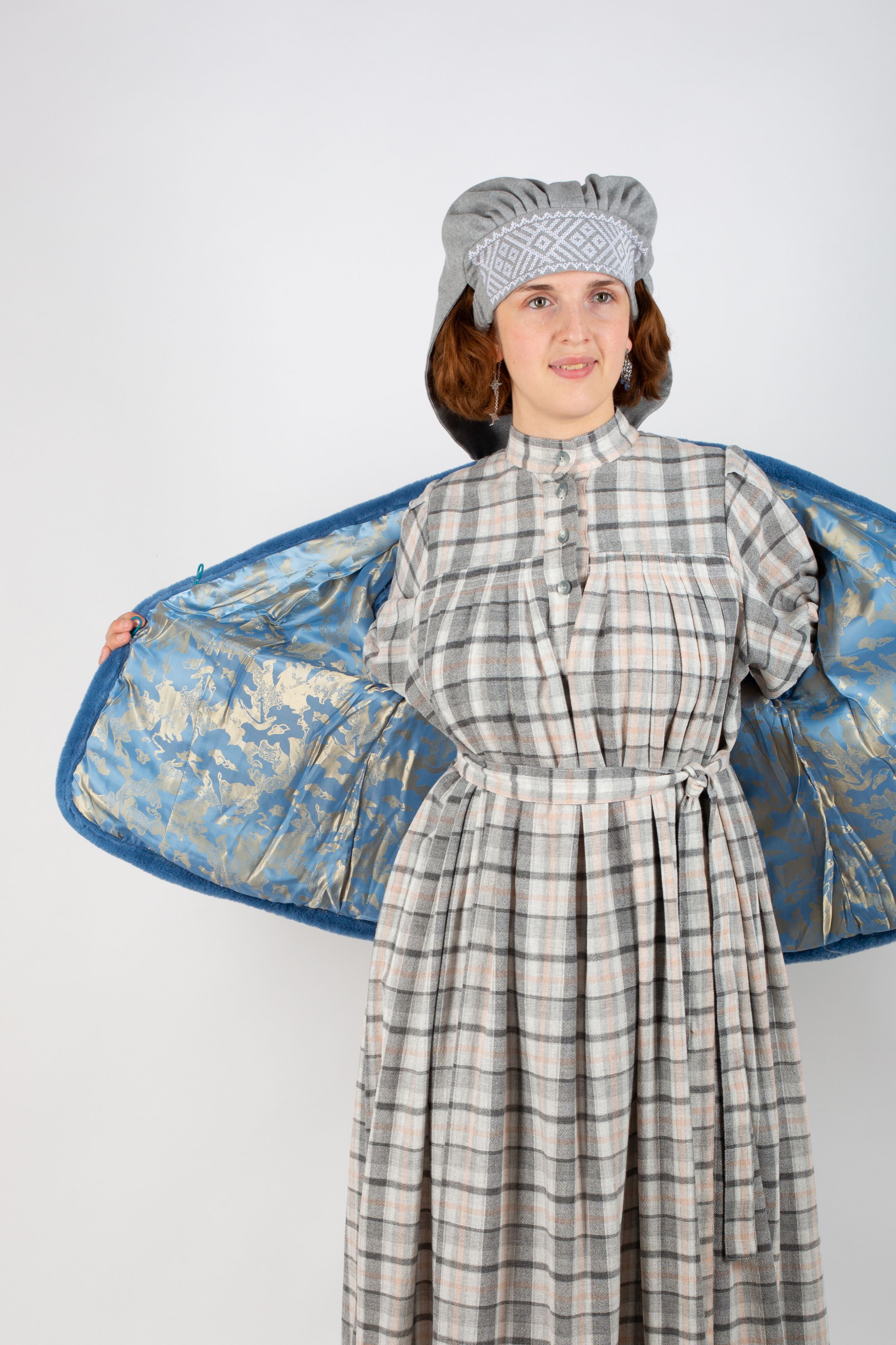 Эко-мех очень приятный и красивого пыльно-синего цвета.