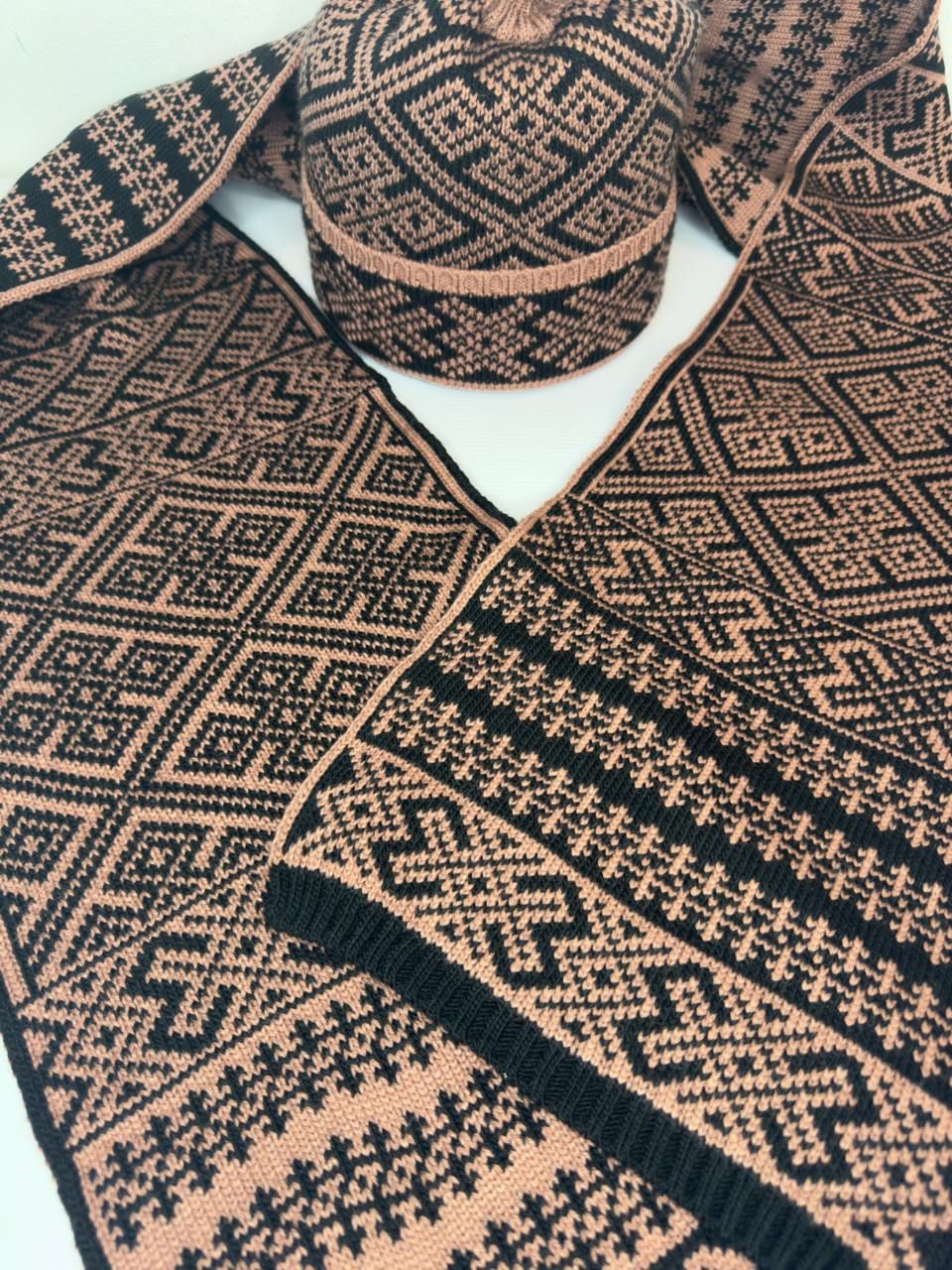 длина шарфа ок. 160 см, ширина ок. 18-20 см. рисунок 2-х сторон ( с одной стороны - позитив, с другой - негатив)