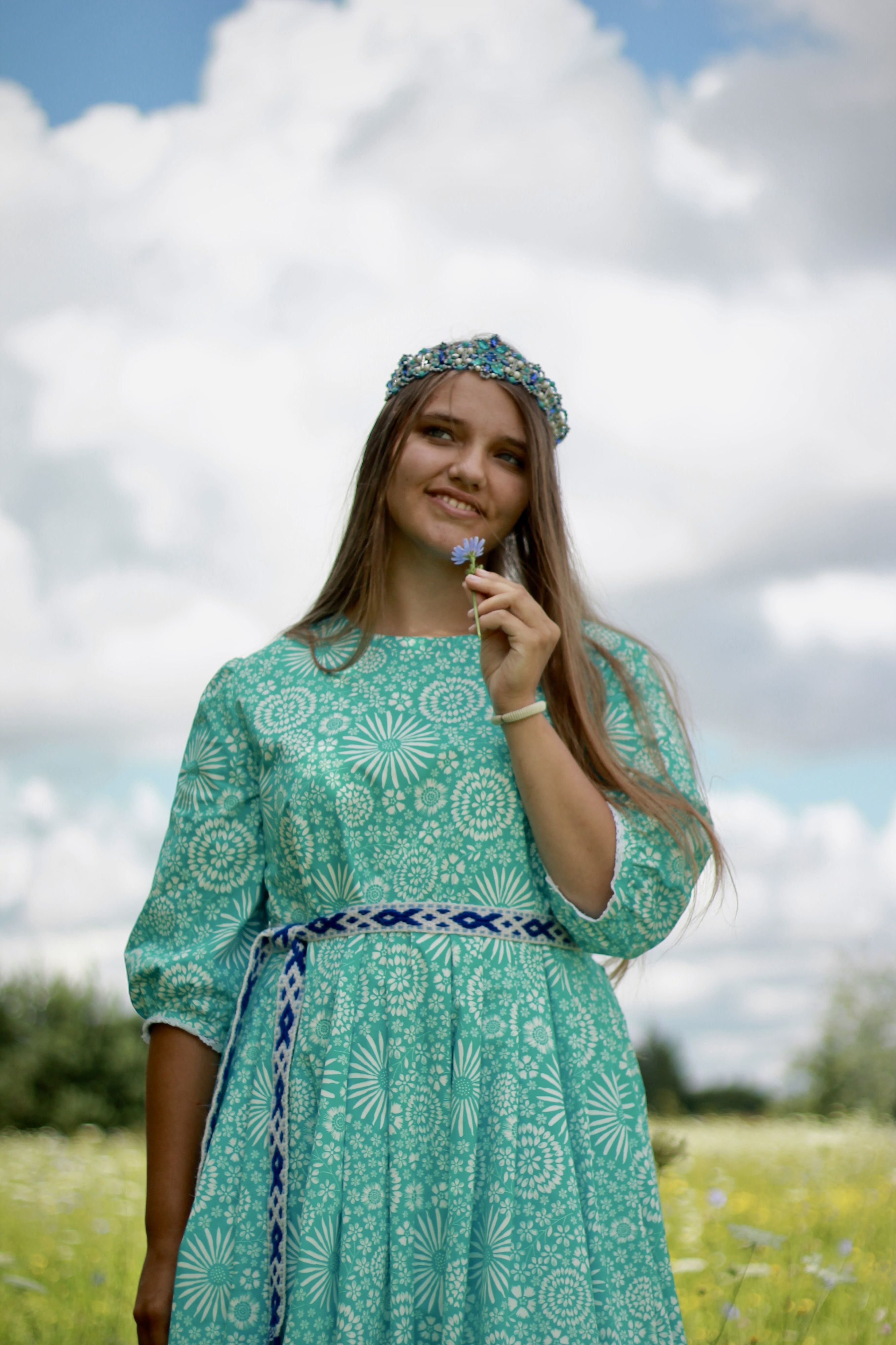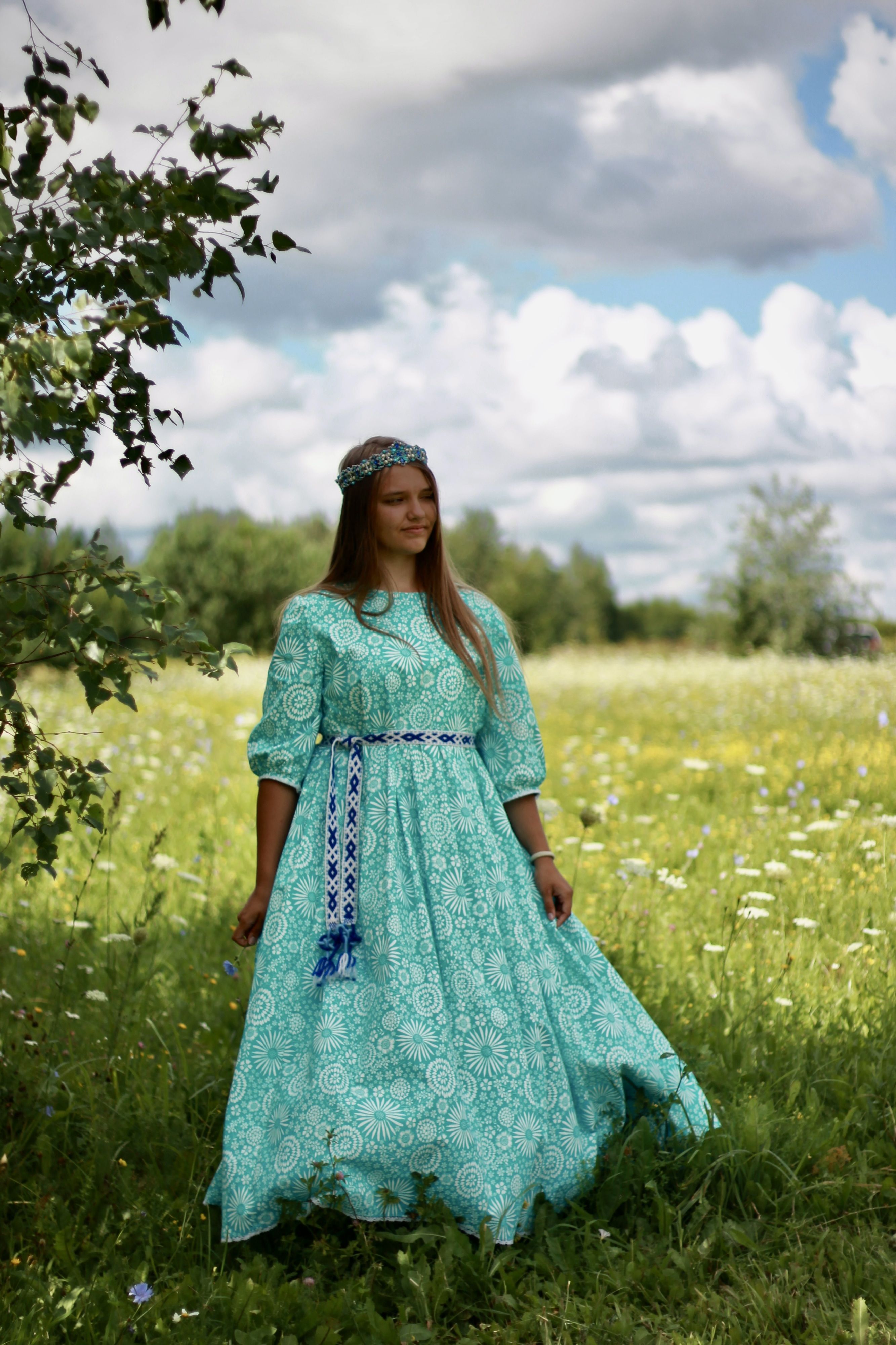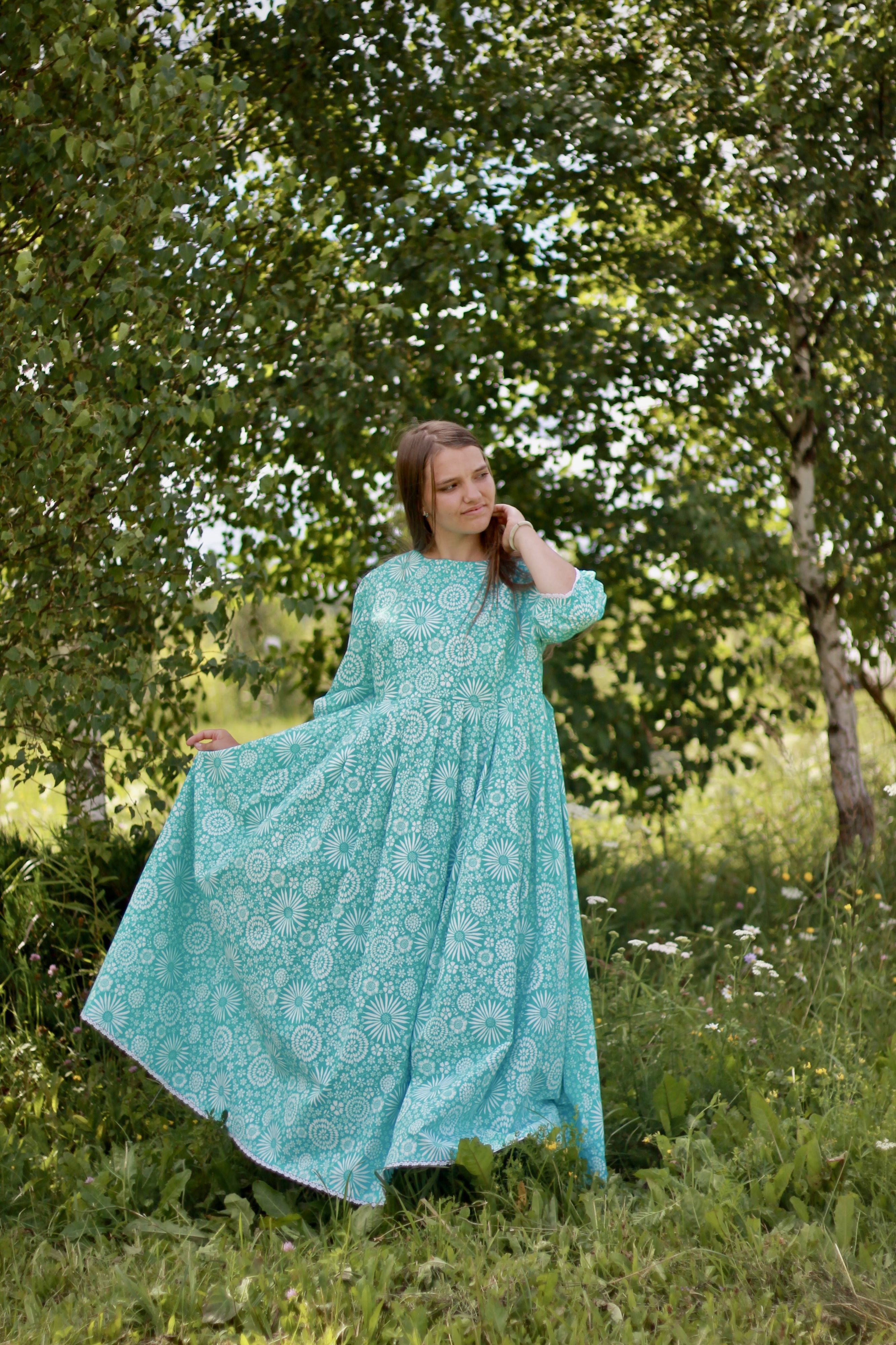 Размер48ЦветбирюзовыйДлинаВ полСтильСлавянскийСезонлетоРукав3/4ВырезкруглыйСоставхлопокУзорцветочныйКружевоестьЕдиница измеренияшт -