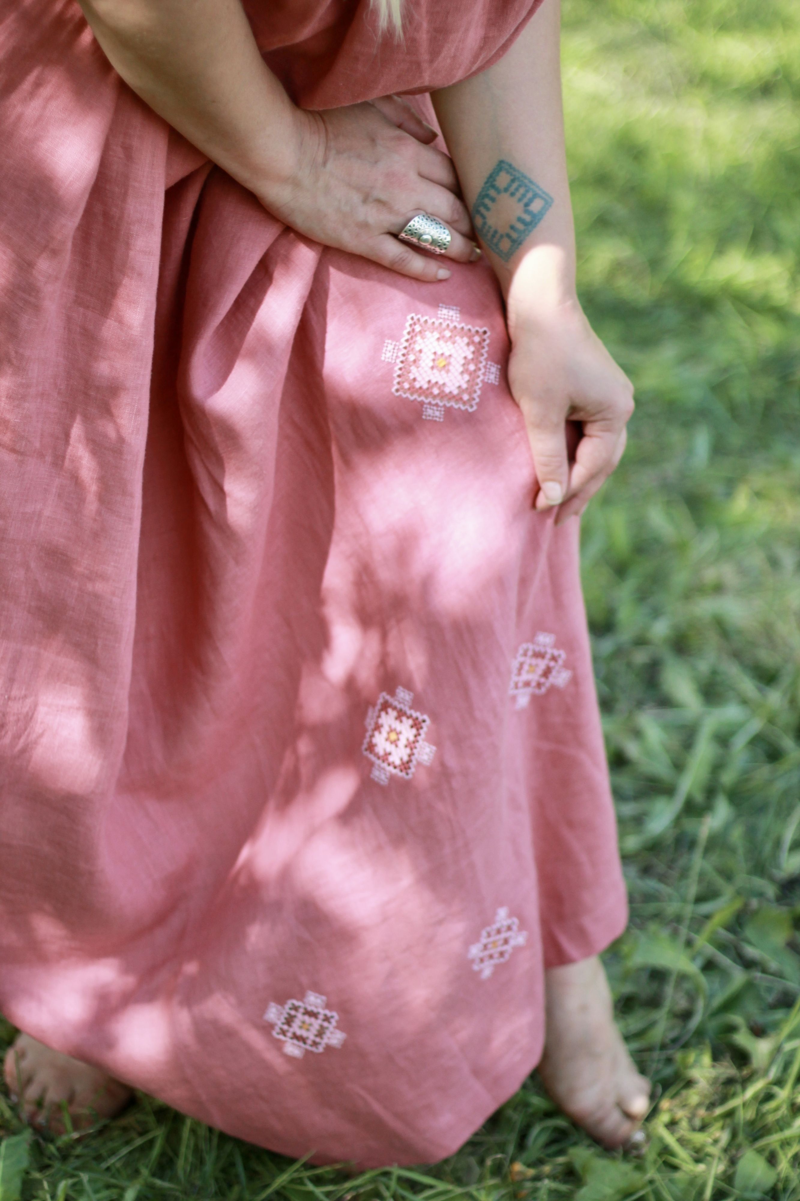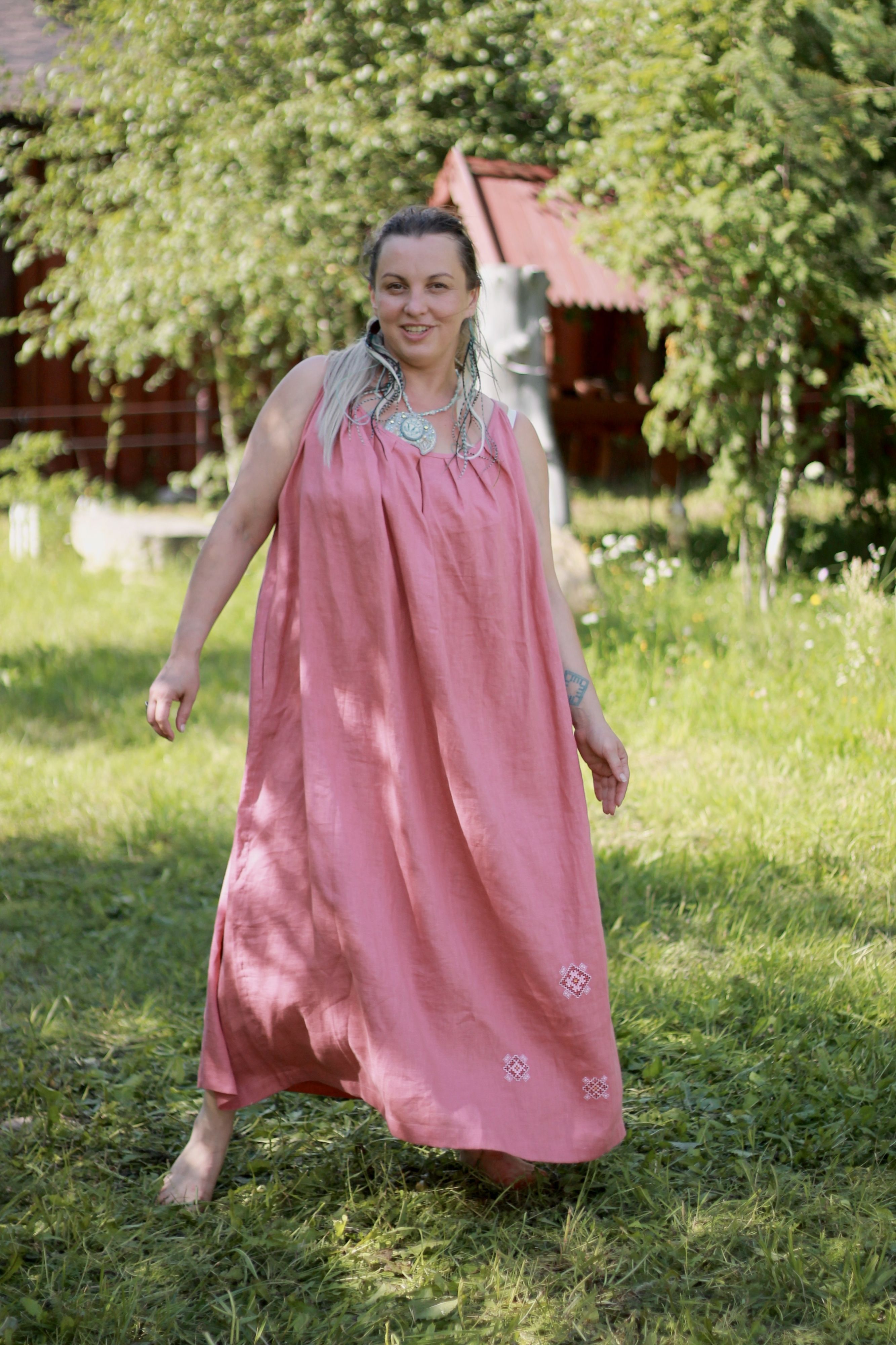 Сарафан "Розовый закат" - это воплощение легкости и женственности. Сшитое из натурального льна, оно подарит вам комфорт и прохладу в жаркие дни.