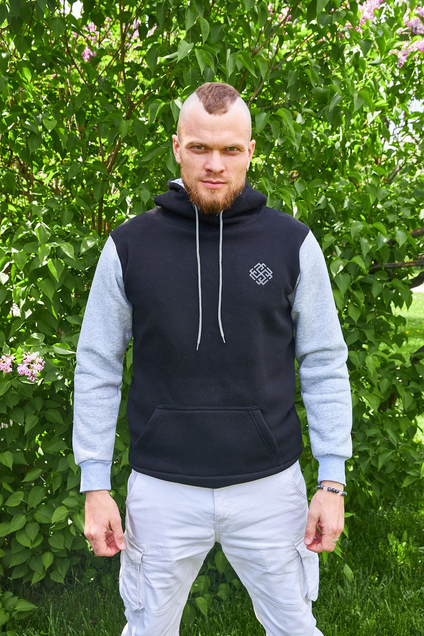 Уютная мужская толстовка из качественного плотного материала с вышивкой символа "Сварожич".